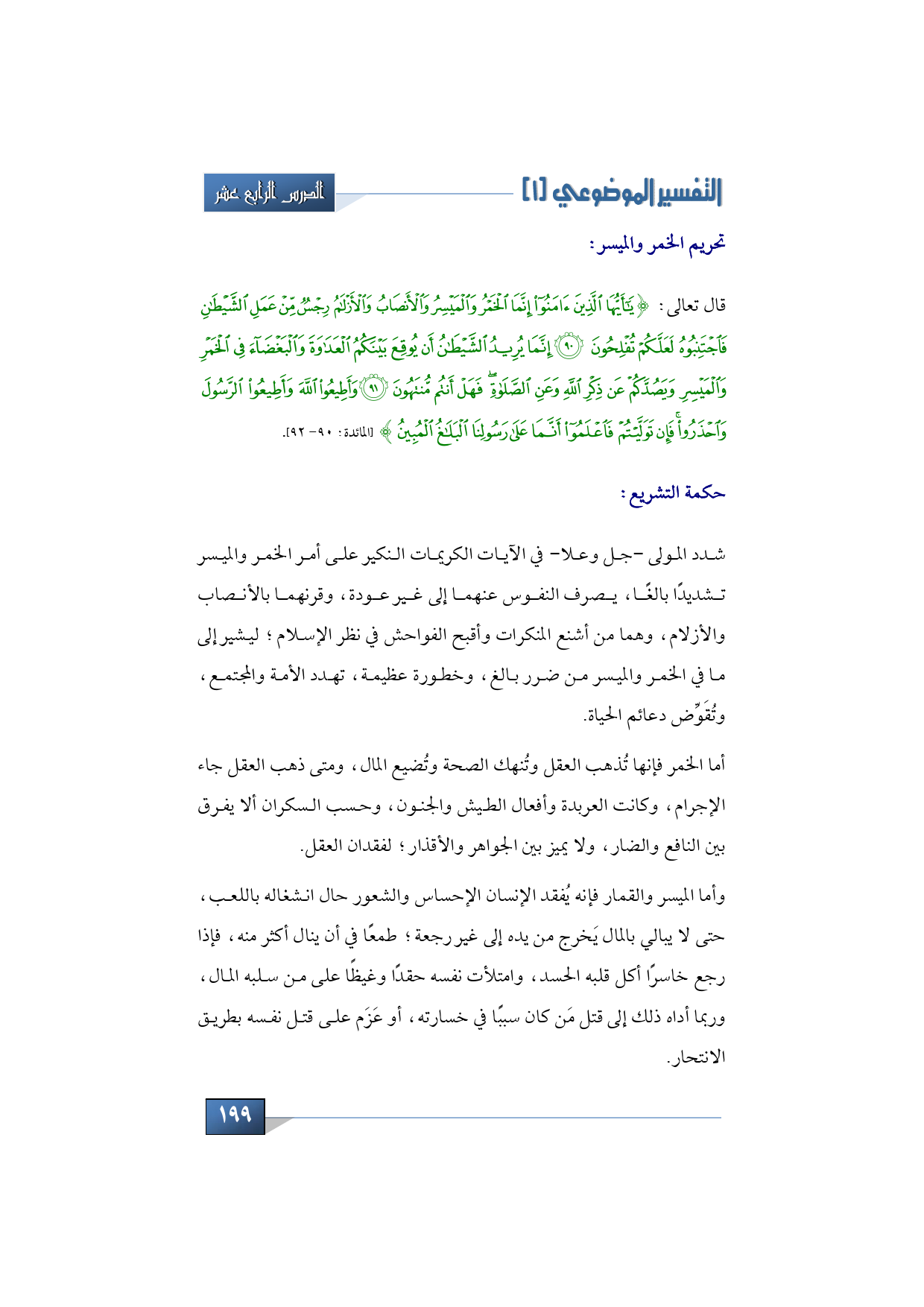 - تحريم الخمر والميسر: