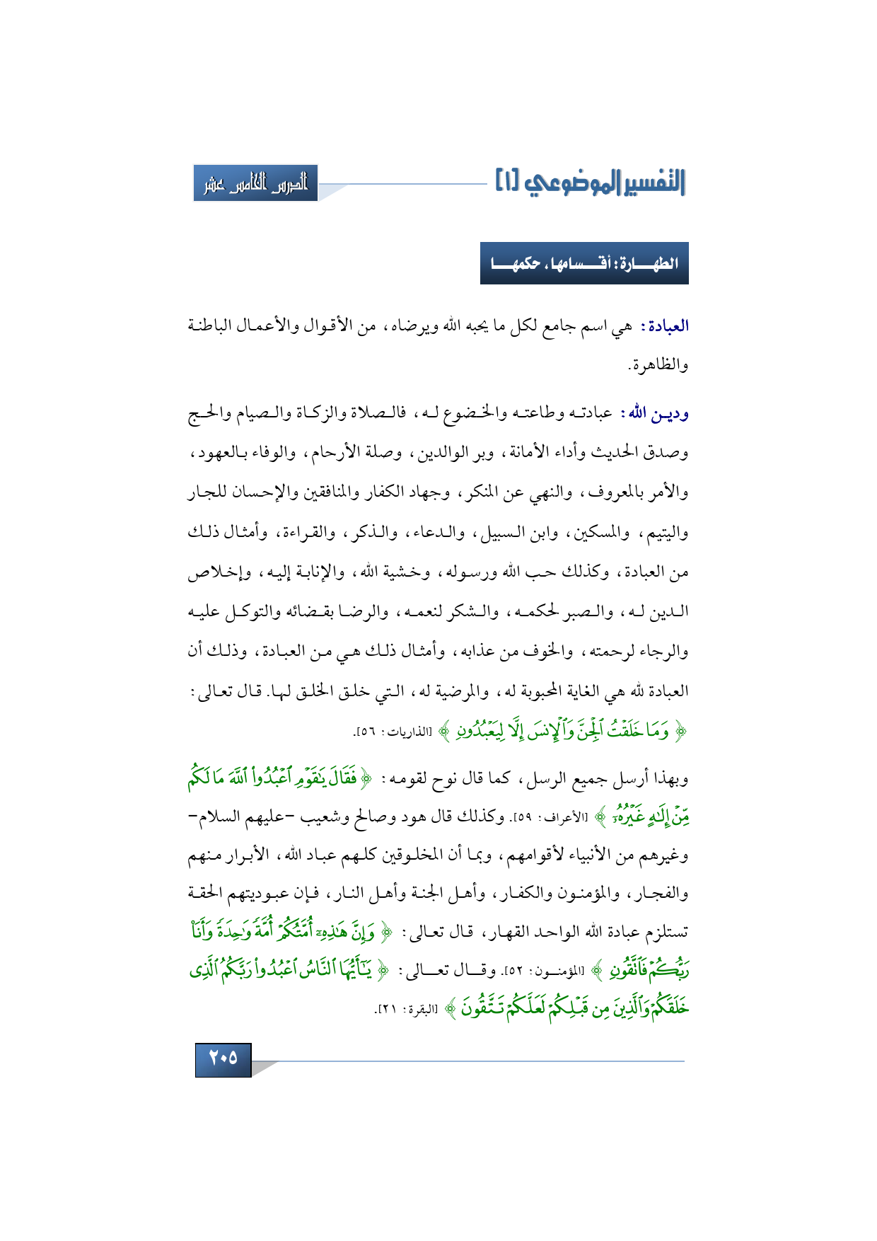 ودين الله: عبادته وطاعته والخضوع له، فالصلاة والزكاة والصيام والحج وصدق الحديث وأداء الأمانة، وبر الوالدين، وصلة الأرحام، والوفاء بالعهود، والأمر بالمعروف، والنهي عن المنكر، وجهاد الكفار والمنافقين والإحسان للجار واليتيم، والمسكين، وابن السبيل، والدعاء، والذكر، والقراءة، وأمثال ذلك من العبادة، وكذلك حب الله ورسوله، وخشية الله، والإنابة إليه، وإخلاص الدين له، والصبر لحكمه، والشكر لنعمه، والرضا بقضائه والتوكل عليه والرجاء لرحمته، والخوف من عذابه، وأمثال ذلك هي من العبادة، وذلك أن العبادة لله هي الغاية المحبوبة له، والمرضية له، التي خلق الخلق لها. قال تعالى: {وَمَا خَلَقْتُ الْجِنَّ وَالْإِنْسَ إِلَّا لِيَعْبُدُون} (الذاريات: 56).