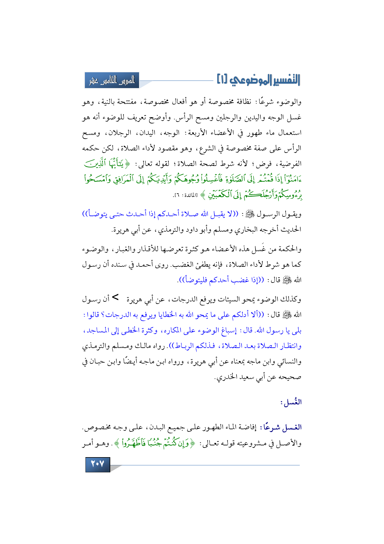والوضوء شرعًا: نظافة مخصوصة أو هو أفعال مخصوصة، مفتتحة بالنية، وهو غسل الوجه واليدين والرجلين ومسح الرأس. وأوضح تعريف للوضوء أنه هو استعمال ماء طهور في الأعضاء الأربعة: الوجه، اليدان، الرجلان، ومسح الرأس على صفة مخصوصة في الشرع، وهو مقصود لأداء الصلاة، لكن حكمه الفرضية، فرض؛ لأنه شرط لصحة الصلاة؛ لقوله تعالى: {يَا أَيُّهَا الَّذِينَ آمَنُوا إِذَا قُمْتُمْ إِلَى الصَّلَاةِ فَاغْسِلُوا وُجُوهَكُمْ وَأَيْدِيَكُمْ إِلَى الْمَرَافِقِ وَامْسَحُوا بِرُءُوسِكُمْ وَأَرْجُلَكُمْ إِلَى الْكَعْبَيْنِ} (المائدة: 6).