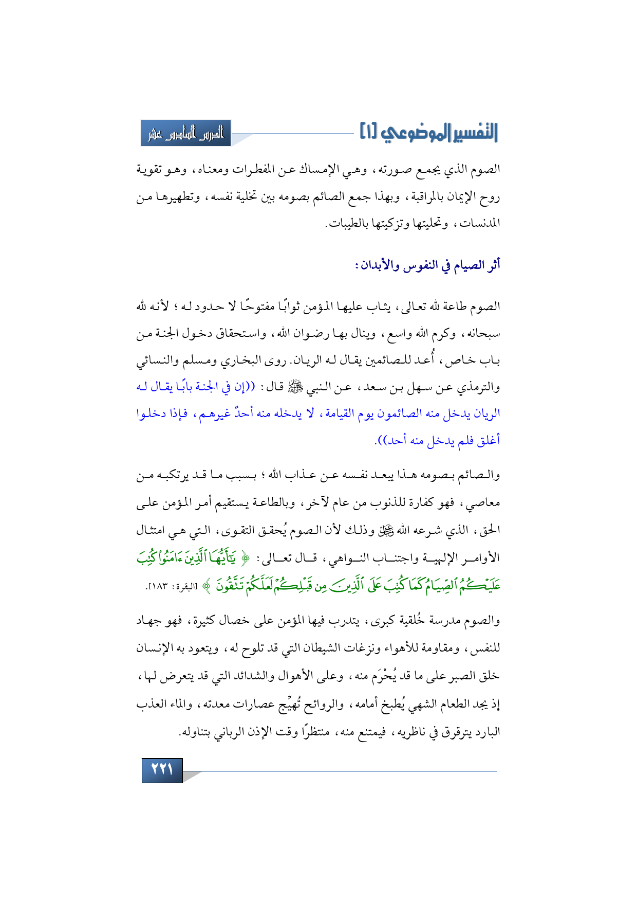 - أثر الصيام في النفوس والأبدان: