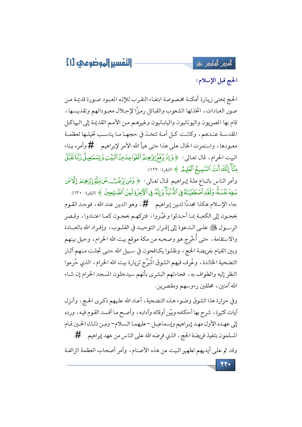وفي حرارة هذا الشوق وضوء هذه التضحية، أعاد الله عليهم ذكرى الحج، وأنزل آيات كثيرة، شرح بها أحكامه وبيّن أوقاته وآدابه، وأصح ما أفسد القوم فيه، ورده إلى عهده الأول مهد إبراهيم وإسماعيل -عليهما السلام- ومِن ذلك الحين قام المسلمون بتنفيذ فريضة الحج، الذي فرضه الله على الناس من عهد إبراهيم -عليه السلام.