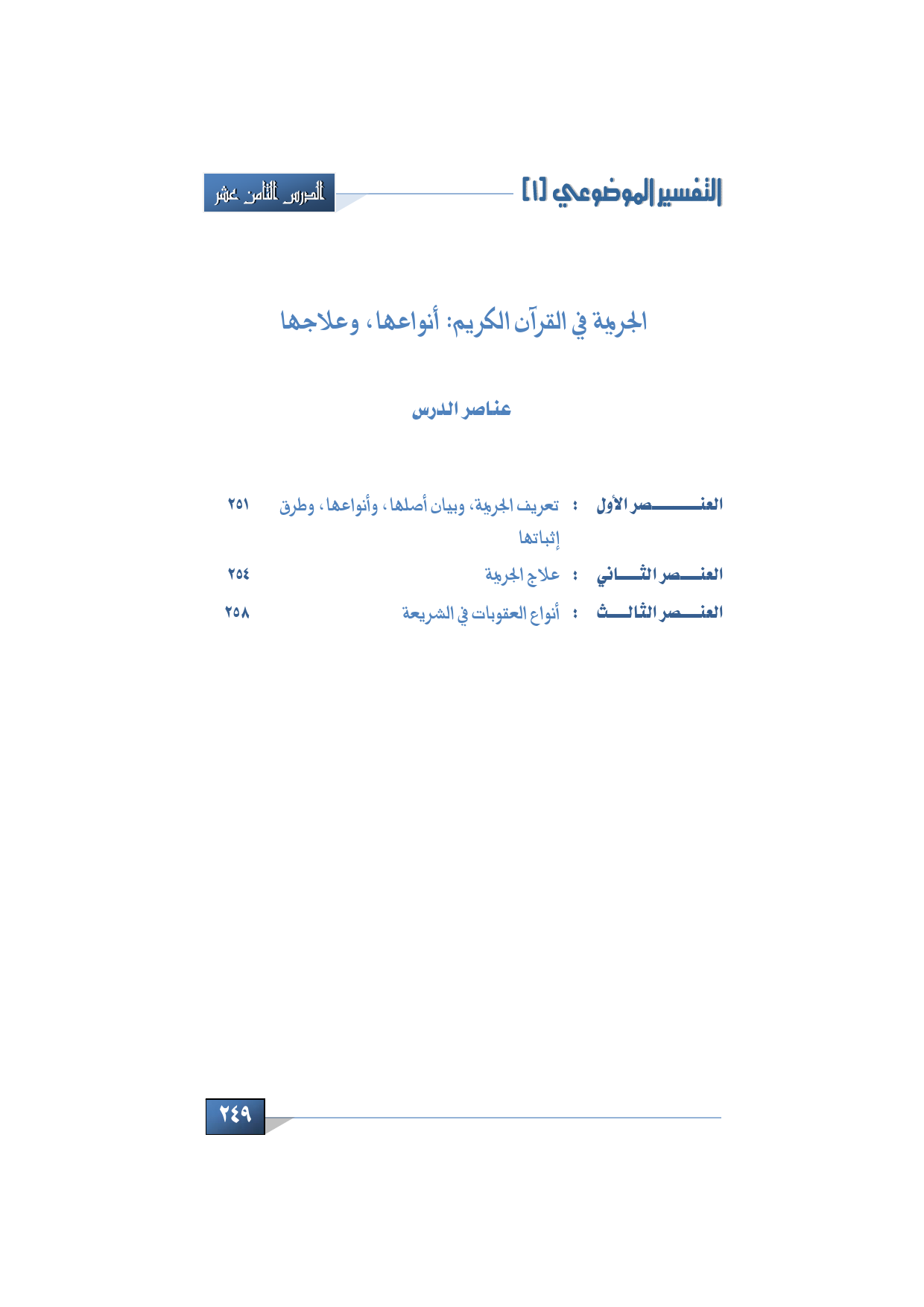 الدرس: 18 الجريمة في القرآن الكريم: أنواعها، وعلاجها.