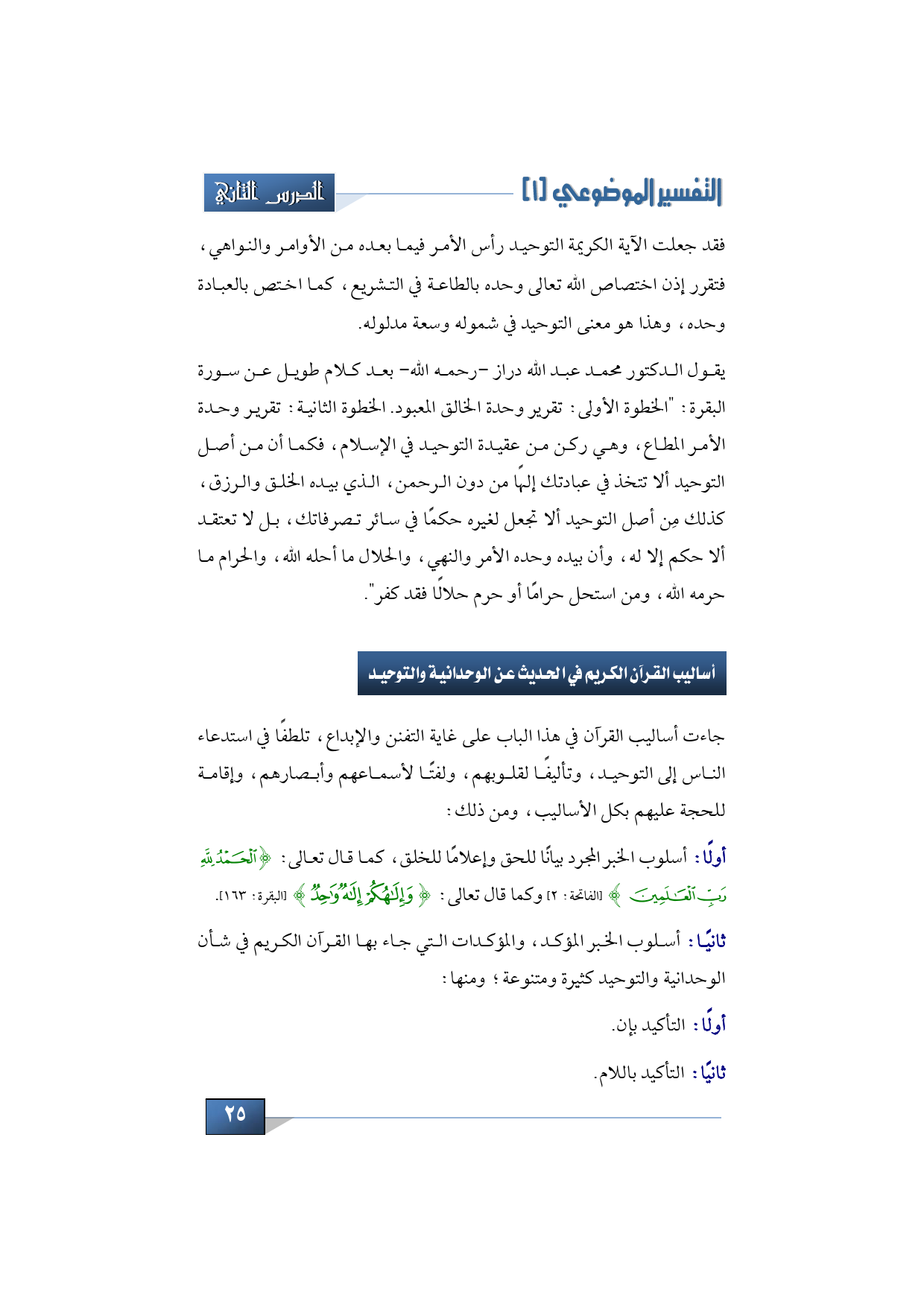 أساليب القرآن الكريم في الحديث عن الوحدانية والتوحيد