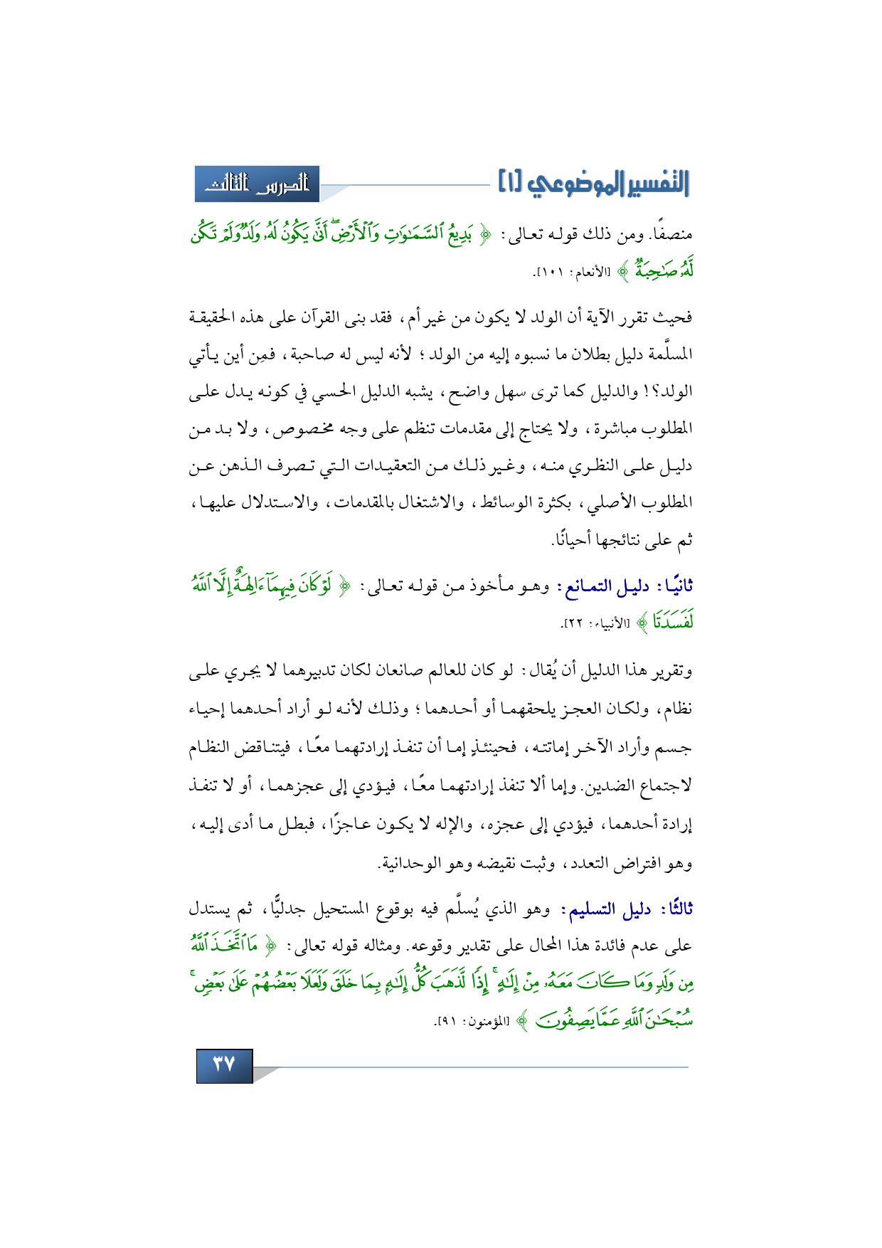 ثانيًا: دليل التمانع: وهو مأخوذ من قوله تعالى: {لَوْ كَانَ فِيهِمَا آلِهَةٌ إِلاَّ اللَّهُ لَفَسَدَتَا} (الأنبياء: 22).
