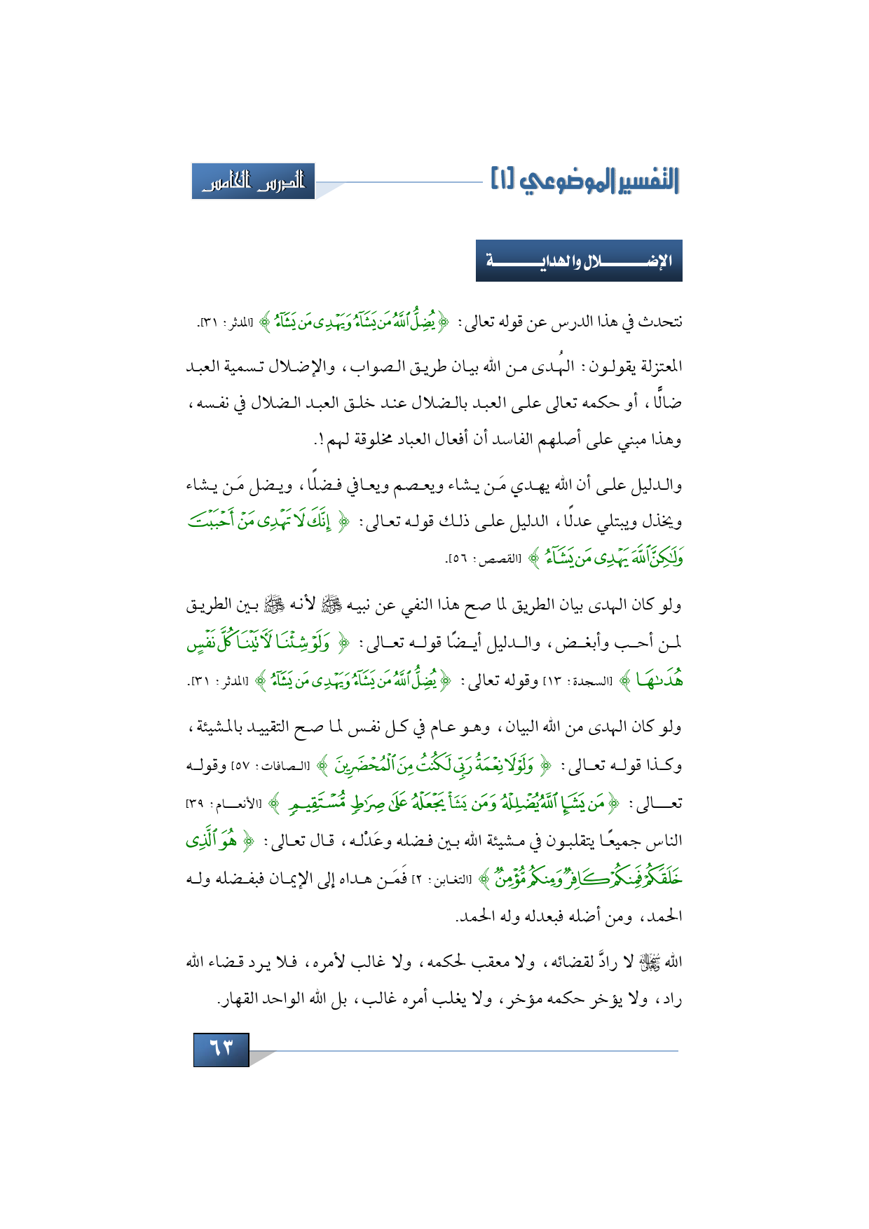 فأول ما نتحدث في هذا الدرس نتحدث عن قوله تعالى: {يُضِلُّ اللَّهُ مَن يَشَاء وَيَهْدِي مَن يَشَاء} (المدثر: 31).