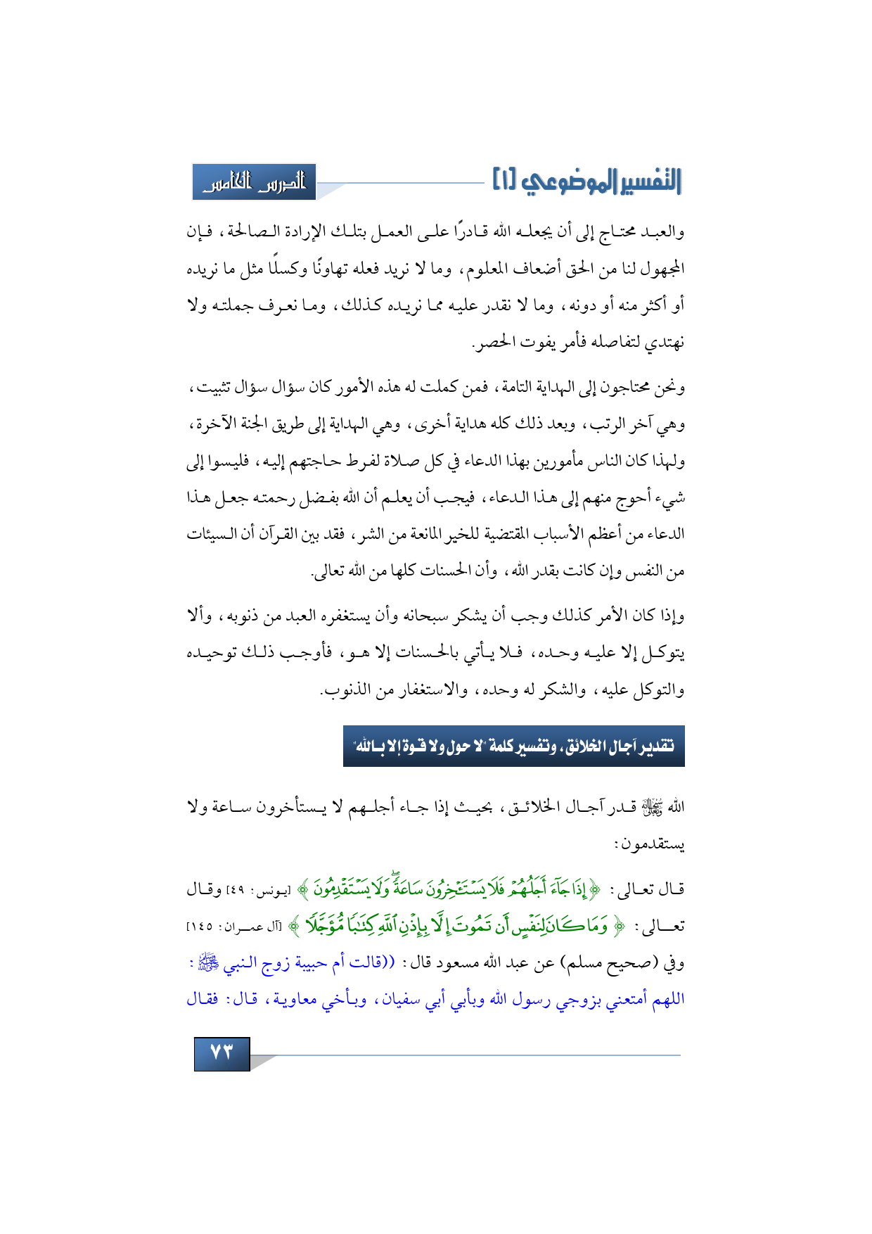تقدير آجال الخلائق، وتفسير كلمة "لا حول ولا قوة إلا بالله"