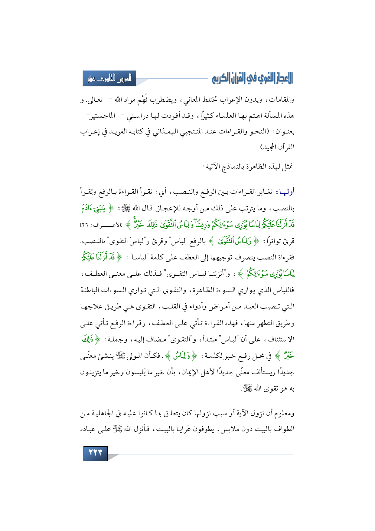 كتاب الإعجاز اللغوي في القرآن الكريم - جامعة المدينة