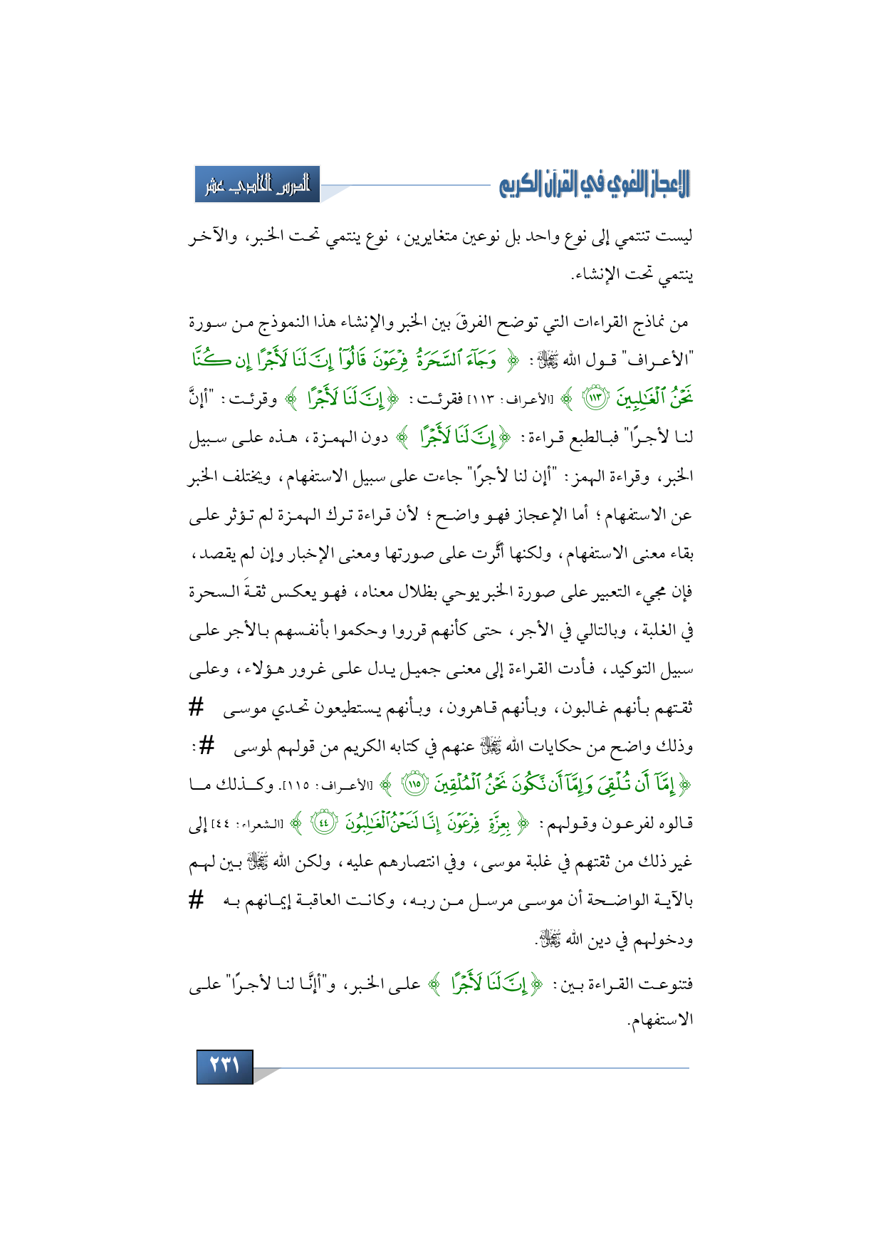 فتنوعت القراءة بين: {إِنَّ لَنَا لَأَجْرًا} على الخبر، و"أإنَّا لنا لأجرًا" على الاستفهام.