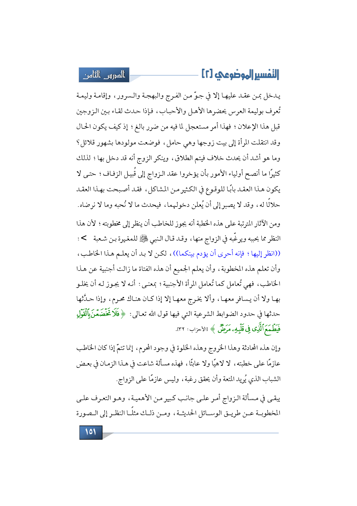 وأن هذه المحادثة وهذا الخروج وهذه الخلوة في وجود المحرم إنما تتمّ إذا كان الخاطب عازمًا على خطبته لا لاهيًا ولا عابثًا، فهذه مسألة شاعت في هذا الزمان في بعض الشباب يُريد المتعة، وأن يحقق رغبة، وليس عازمًا على الزواج.