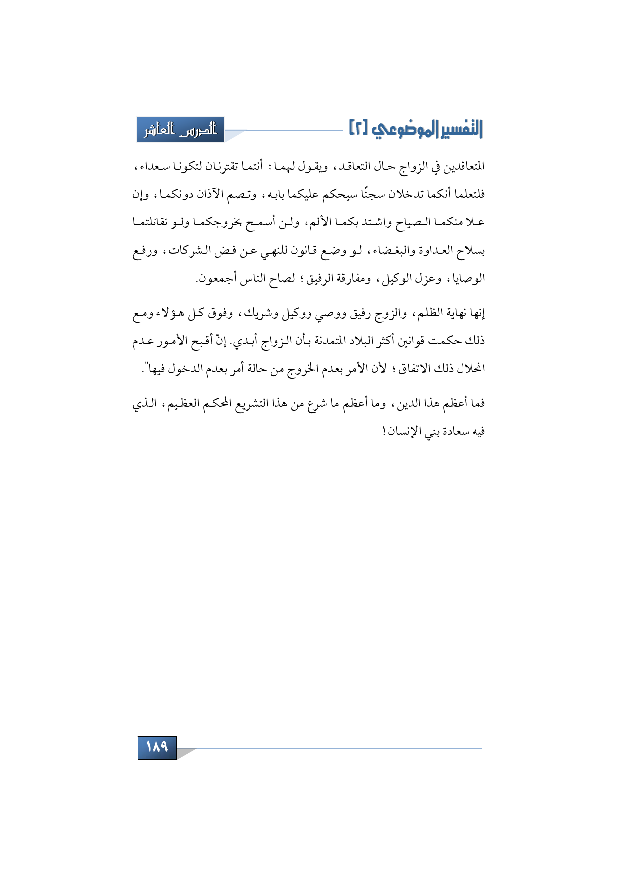 فما أعظم هذا الدين، وما أعظم ما شرع من هذا التشريع المحكم العظيم، الذي فيه سعادة بني الإنسان.