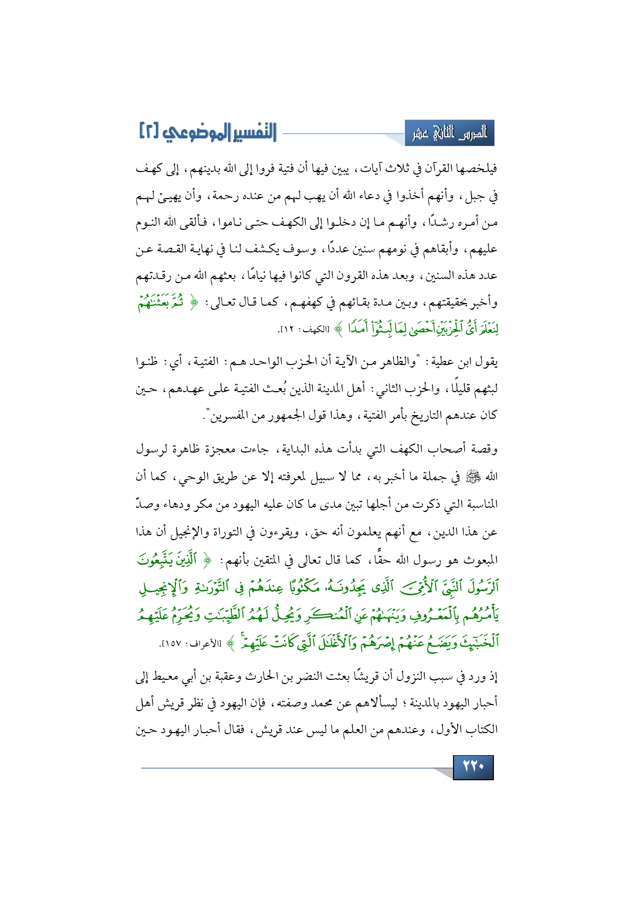 وقصة أصحاب الكهف التي بدأت هذه البداية جاءت معجزة ظاهرة لرسول الله -صلى الله عليه وسلم- في جملة ما أخبر به، مما لا سبيل لمعرفته إلا عن طريق الوحي، كما أن المناسبة التي ذكرت من أجلها تبين مدى ما كان عليه اليهود من مكر ودهاء وصد عن هذا الدين، مع أنهم يعلمون أنه حق، ويقرءون في التوراة والإنجيل أن هذا المبعوث هو رسول الله حقًّا، كما قال تعالى في المتقين بأنهم: {الَّذِينَ يَتَّبِعُونَ الرَّسُولَ النَّبِيَّ الْأُمِّيَّ الَّذِي يَجِدُونَهُ مَكْتُوبًا عِنْدَهُمْ فِي التَّوْرَاةِ وَالْإِنْجِيلِ يَأْمُرُهُمْ بِالْمَعْرُوفِ وَيَنْهَاهُمْ عَنِ الْمُنْكَرِ وَيُحِلُّ لَهُمُ الطَّيِّبَاتِ وَيُحَرِّمُ عَلَيْهِمُ الْخَبَائِثَ وَيَضَعُ عَنْهُمْ إِصْرَهُمْ وَالْأَغْلَالَ الَّتِي كَانَتْ عَلَيْهِمْ} (الأعراف: 157).