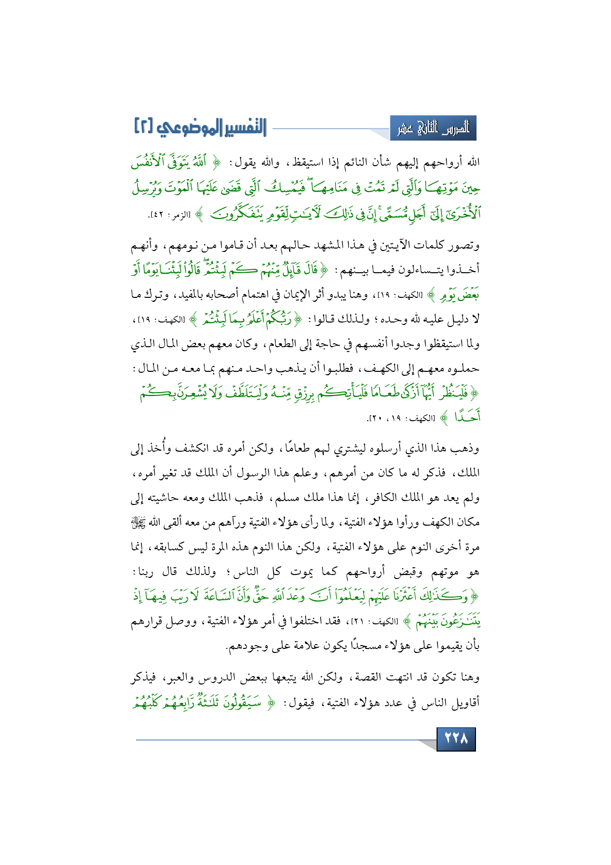 وهنا تكون قد انتهت القصة، ولكن الله يتبعها ببعض الدروس والعبر، فيذكر أقاويل الناس في عدد هؤلاء الفتية، فيقول: {سَيَقُولُونَ ثَلَاثَةٌ رَابِعُهُمْ كَلْبُهُمْ