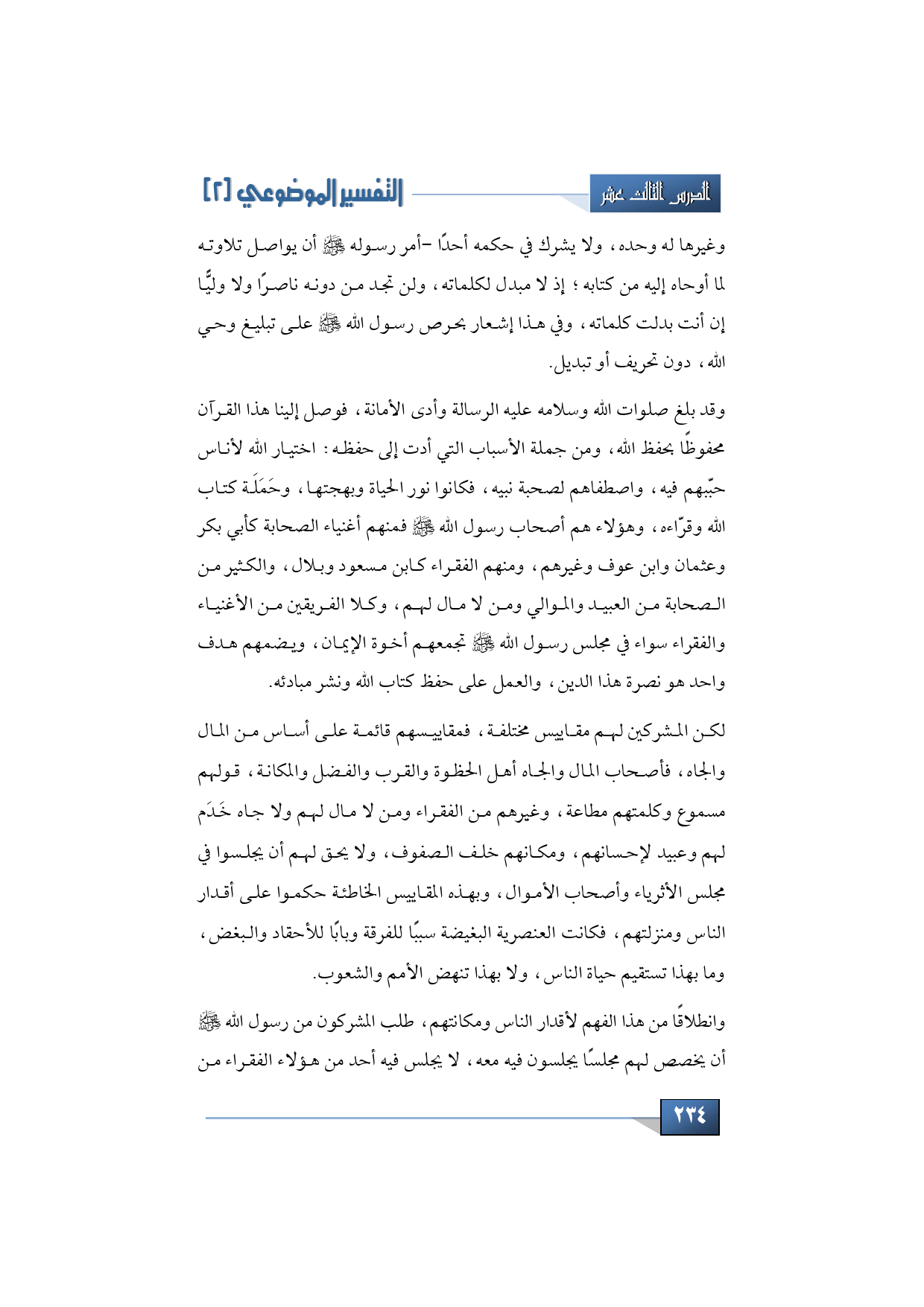 وقد بلغ صلوات الله وسلامه عليه الرسالة وأدى الأمانة، فوصل إلينا هذا القرآن محفوظًا بحفظ الله، ومن جملة الأسباب التي أدت إلى حفظه اختيار الله لأناس حببهم فيه، واصطفاهم لصحبة نبيه، فكانوا نور الحياة وبهجتها، وحملة كتاب الله وقراءه، وهؤلاء هم أصحاب رسول الله -صلى الله عليه وسلم- منهم أغنياء الصحابة كأبي بكر وعثمان وابن عوف وغيرهم، ومنهم الفقراء كابن مسعود وبلال والكثير من الصحابة من العبيد والموالي، ومن لا مال لهم، وكلا الفريقين من الأغنياء والفقراء سواء في مجلس رسول الله -صلى الله عليه وسلم- تجمعهم أخوة الإيمان، ويضمهم هدف واحد هو نصرة هذا الدين، والعمل على حفظ كتاب الله ونشر مبادئه.