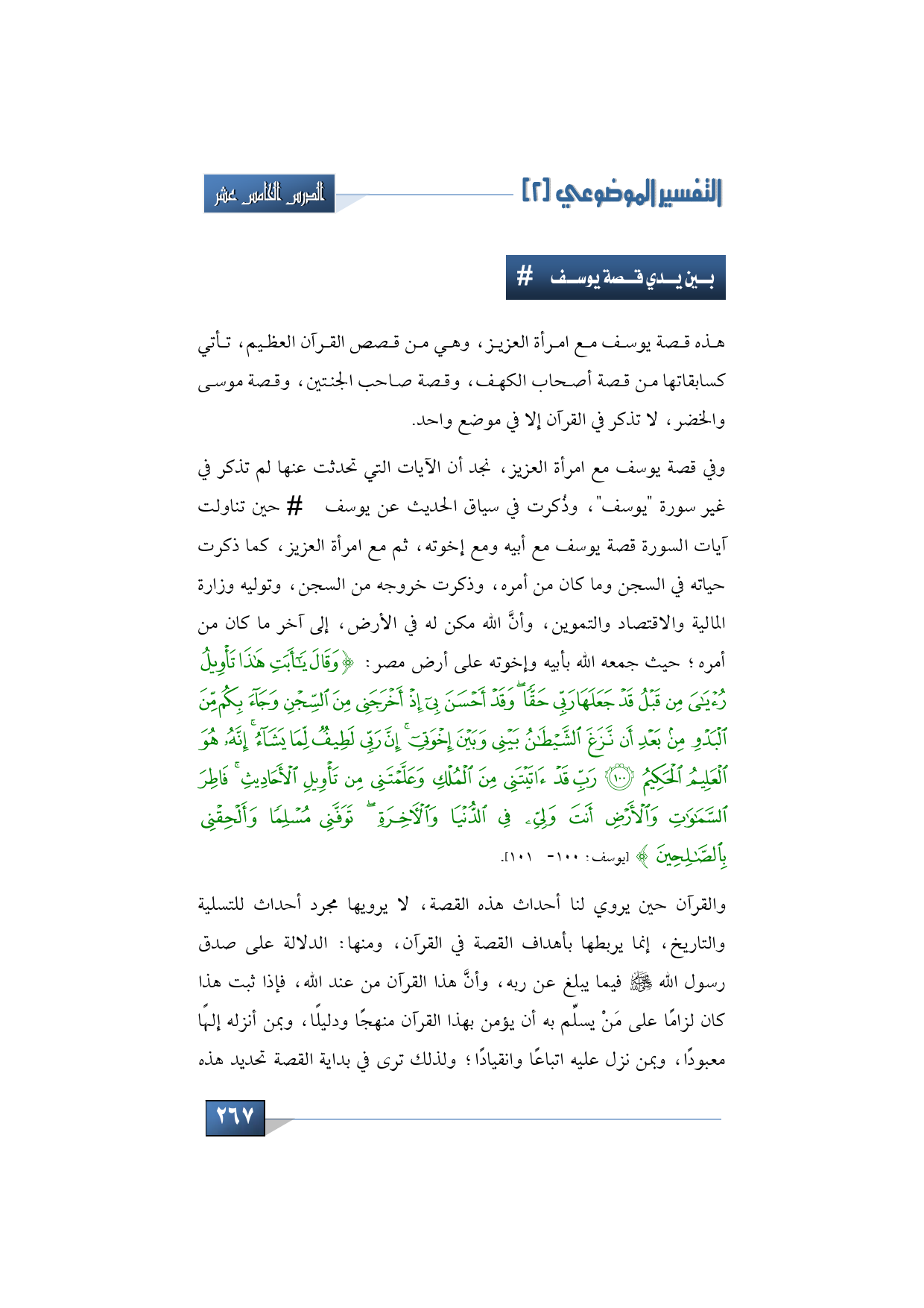 فهذه قصة يوسف مع امرأة العزيز، من قصص القرآن العظيم، تأتي كسابقتها من قصة أصحاب الكهف، وقصة صاحب الجنتين، وقصة موسى والخضر، لا تذكر في القرآن إلا في موضع واحد.
