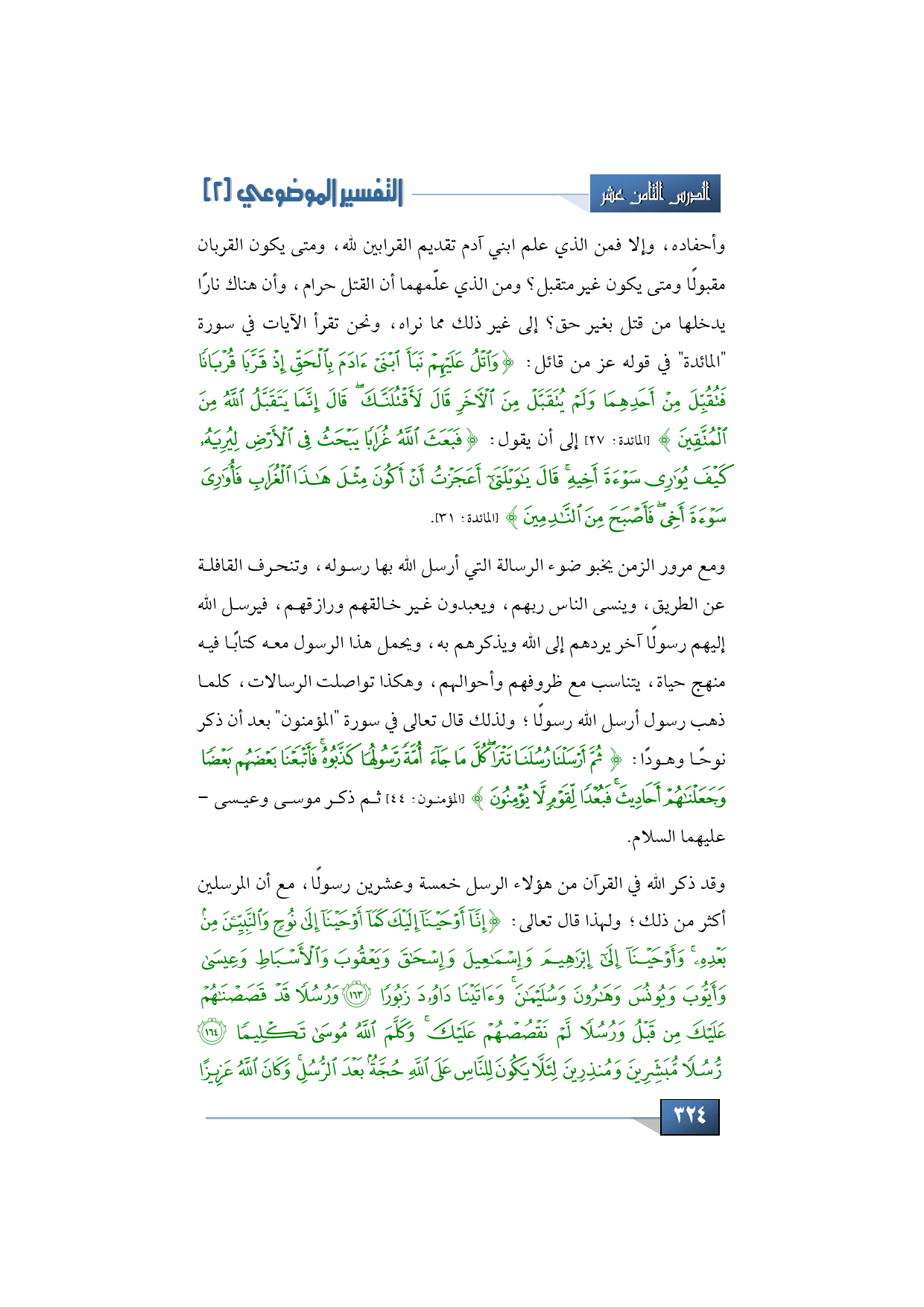 وقد ذكر الله في القرآن من هؤلاء الرسل خمسًا وعشرين رسولًا، مع أن المرسلين أكثر من ذلك، ولهذا قال تعالى: {إِنَّا أَوْحَيْنَا إِلَيْكَ كَمَا أَوْحَيْنَا إِلَى نُوحٍ وَالنَّبِيِّينَ مِنْ بَعْدِهِ * وَأَوْحَيْنَا إِلَى إِبْرَاهِيمَ وَإِسْمَاعِيلَ وَإِسْحَاقَ وَيَعْقُوبَ وَالْأَسْبَاطِ وَعِيسَى وَأَيُّوبَ وَيُونُسَ وَهَارُونَ وَسُلَيْمَانَ وَآتَيْنَا دَاوُدَ زَبُورًا * وَرُسُلًا قَدْ قَصَصْنَاهُمْ عَلَيْكَ مِنْ قَبْلُ وَرُسُلًا لَمْ نَقْصُصْهُمْ عَلَيْكَ وَكَلَّمَ اللَّهُ مُوسَى تَكْلِيمًا * رُسُلًا مُبَشِّرِينَ وَمُنْذِرِينَ لِئَلَّا يَكُونَ لِلنَّاسِ عَلَى اللَّهِ حُجَّةٌ بَعْدَ الرُّسُلِ وَكَانَ اللَّهُ عَزِيزًا