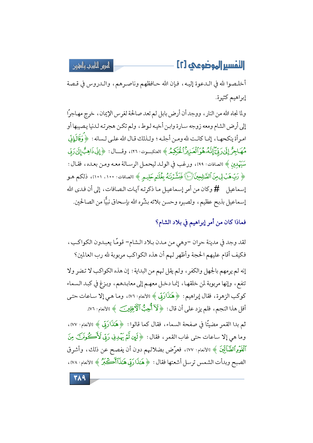فماذا كان من أمر إبراهيم في بلاد الشام؟ لقد وجد في مدينة حران، وهي من مدن بلاد الشام، قومًا يعبدون الكواكب فكيف أقام عليهم الحجة، وأظهر لهم أن هذه الكواكب مربوبة لله رب العالمين؟ إنه لم يرمهم بالجهل والكفر، ولم يقل لهم من البداية: إن هذه الكواكب لا تضر ولا تنفع، وإنها مربوبة لمن خلقها، إنما دخل معهم إلى معابدهم، وبزغ في كبد السماء كوكب الزهرة، فقال إبراهيم: {هَذَا رَبِّي} (الأنعام: 76) وما هي إلا ساعات حتى أفل هذا النجم، فلم يزد على أن قال: {لَا أُحِبُّ الْآفِلِينَ} (الأنعام: 76).
