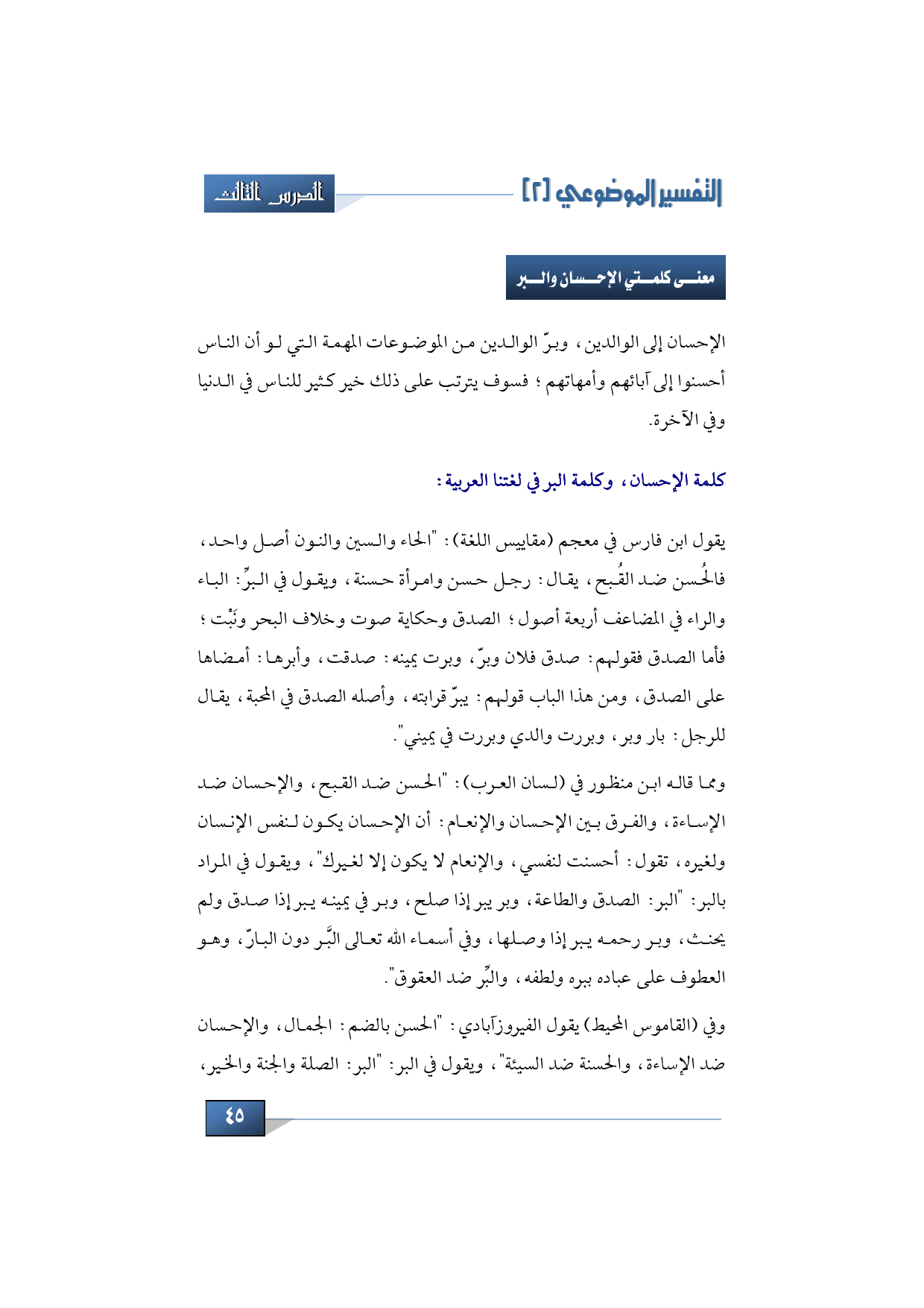 معنى كلمتي الإحسان والبر