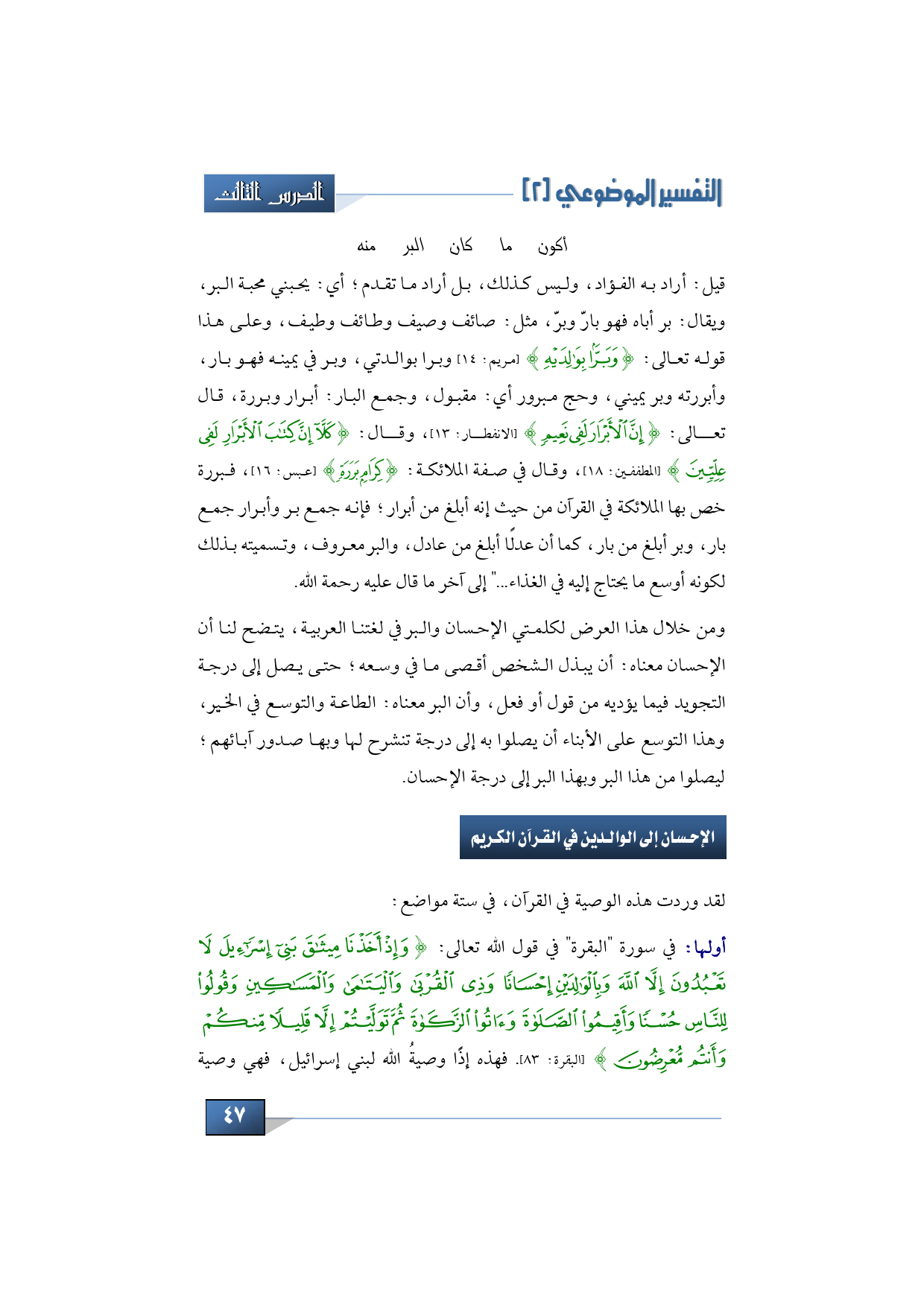 الإحسان إلى الوالدين في القرآن الكريم