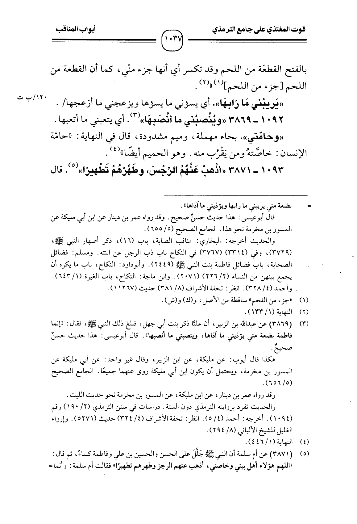 1092 -[3869] "ويُنْصبُني ما أنْصَبهَا". أي يتعبني ما أتعبها.