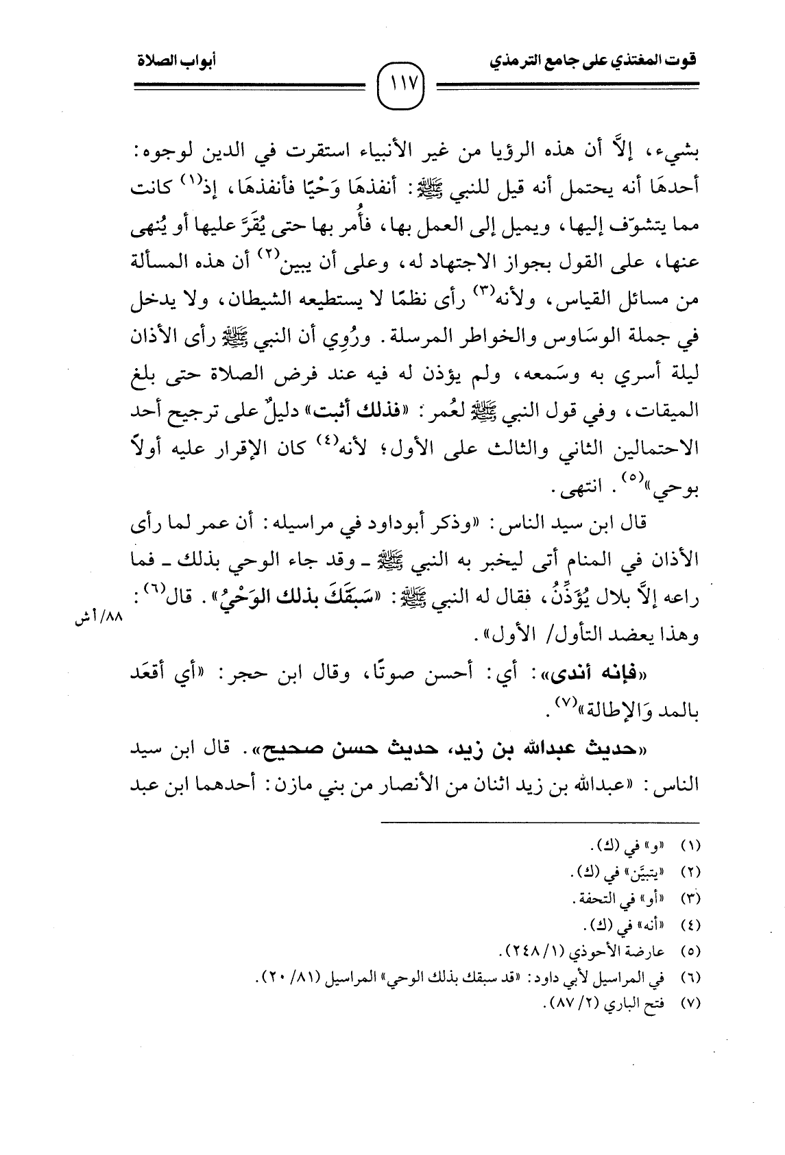 " حديث عبد الله بن زيد، حديث حسن صحيح ". قال ابن سيد الناس: "عبد الله بن زيد اثنان من الأنصار من بني مازن: أحدهما ابن عبد