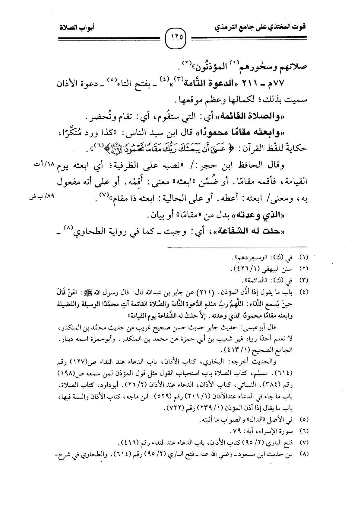 77 م- 211 " الدعوة التَّامة (¬3) " (¬4) -بفتح التاء (¬5) - دعوة الأذان سميت بذلك؛ لكمالها وعظم موقعها.
