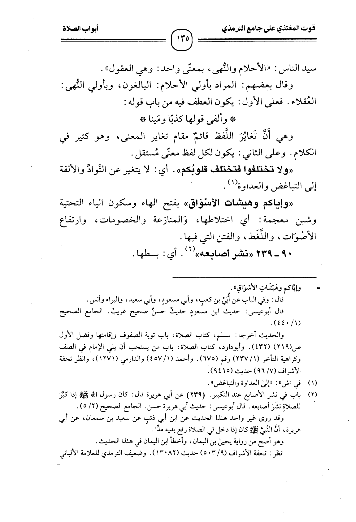 (¬1) باب في نشر الأصابع عند التكبير. (239) عن أبي هريرة قال: كان رسول الله - صَلَّى اللَّهُ عَلَيْهِ وَسَلَّمَ - إذا كبَّرَ للصلاةِ نشَرَ أصابعه. قال أبو عيسى: حديث أبي هريرة حسن. الجامع الصحيح (2/5) .