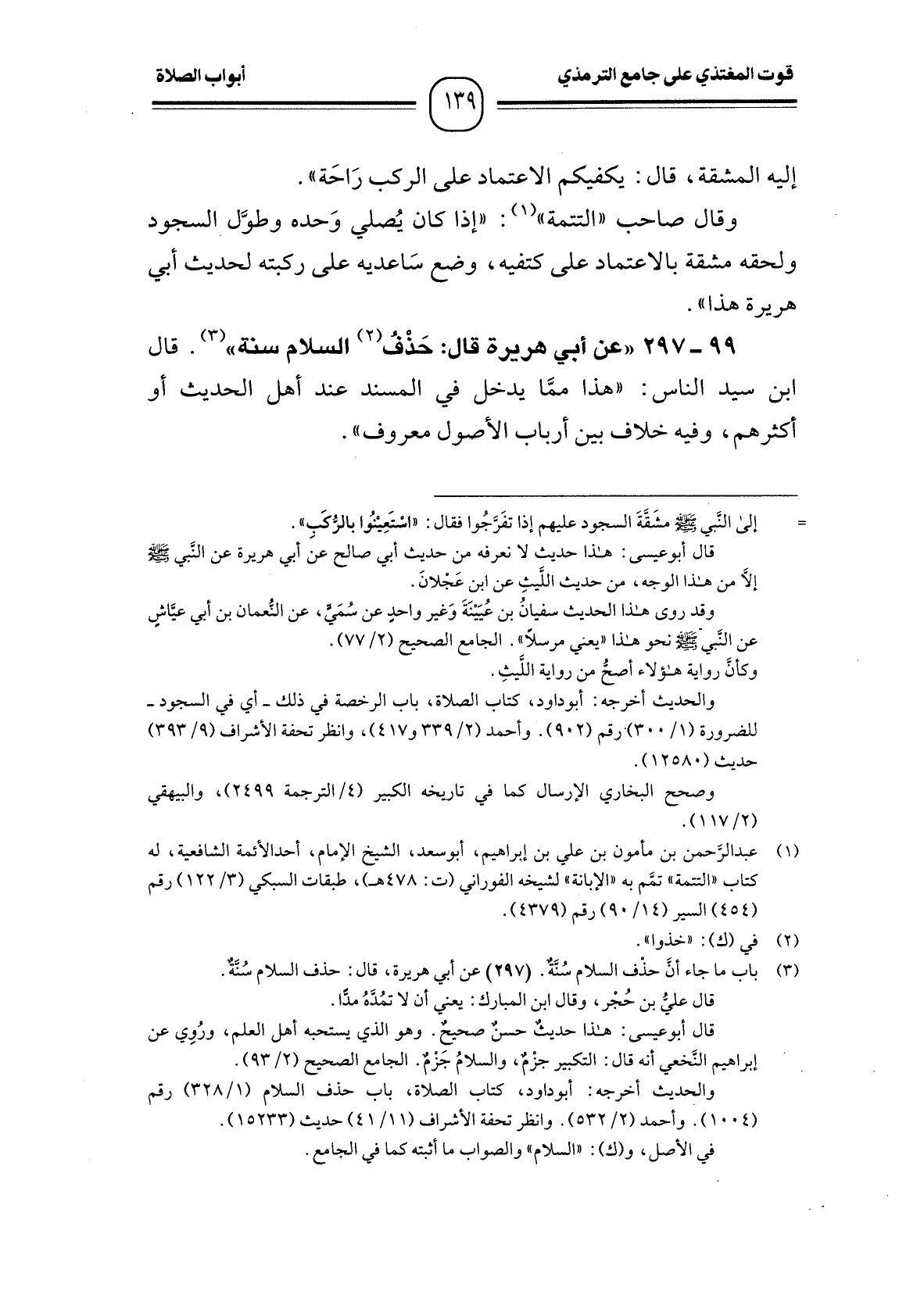 (¬2) باب ما جاء أنَّ حذْف السلام سُنَّةٌ. (297) عن أبي هريرة، قال: حذف السلام سُنَّةٌ.