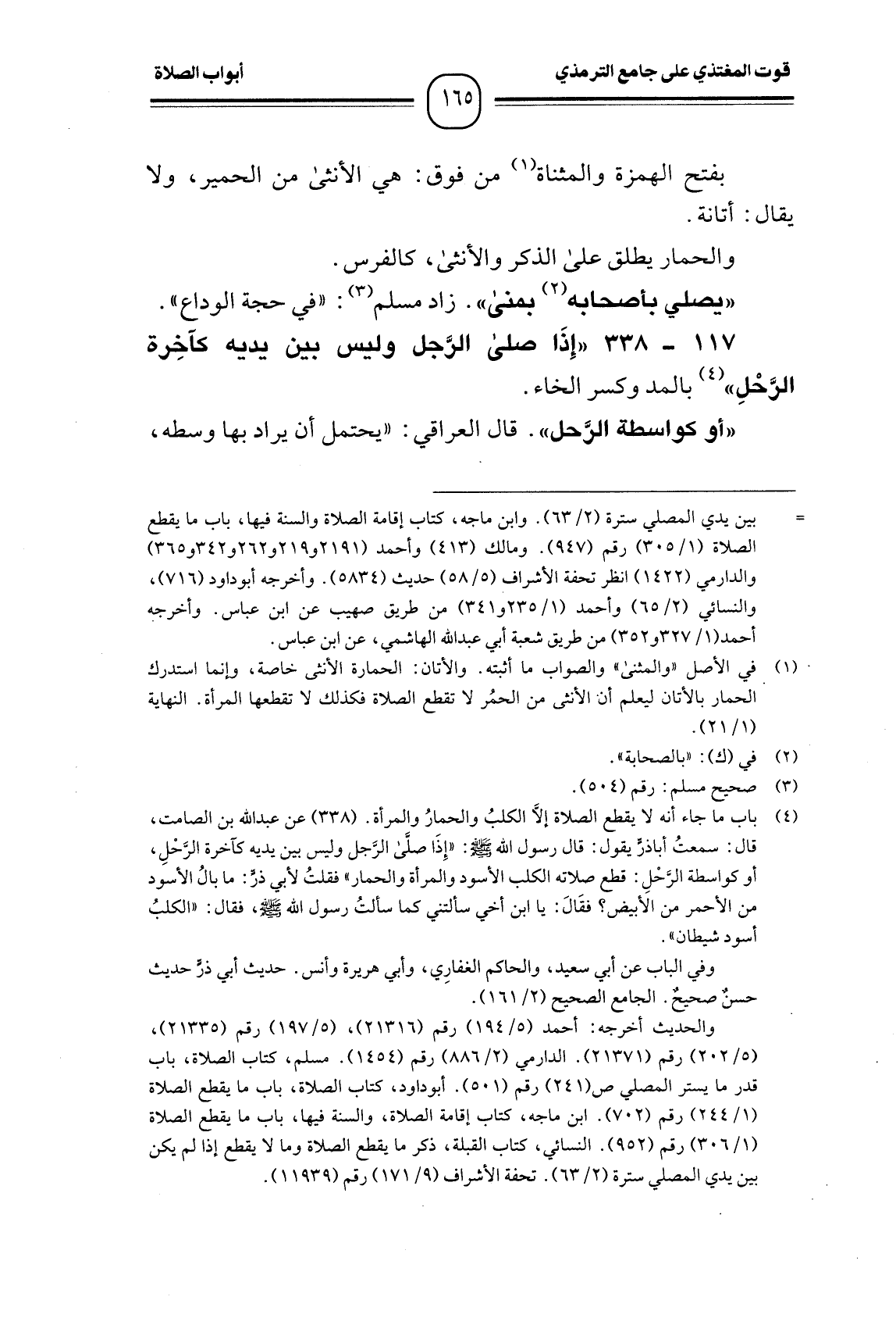 117 -[338] " إِذَا صلى الرَّجل وليس بين يديه كآخِرة الرَّحْلِ " (¬1) بالمد وكسر الخاء.