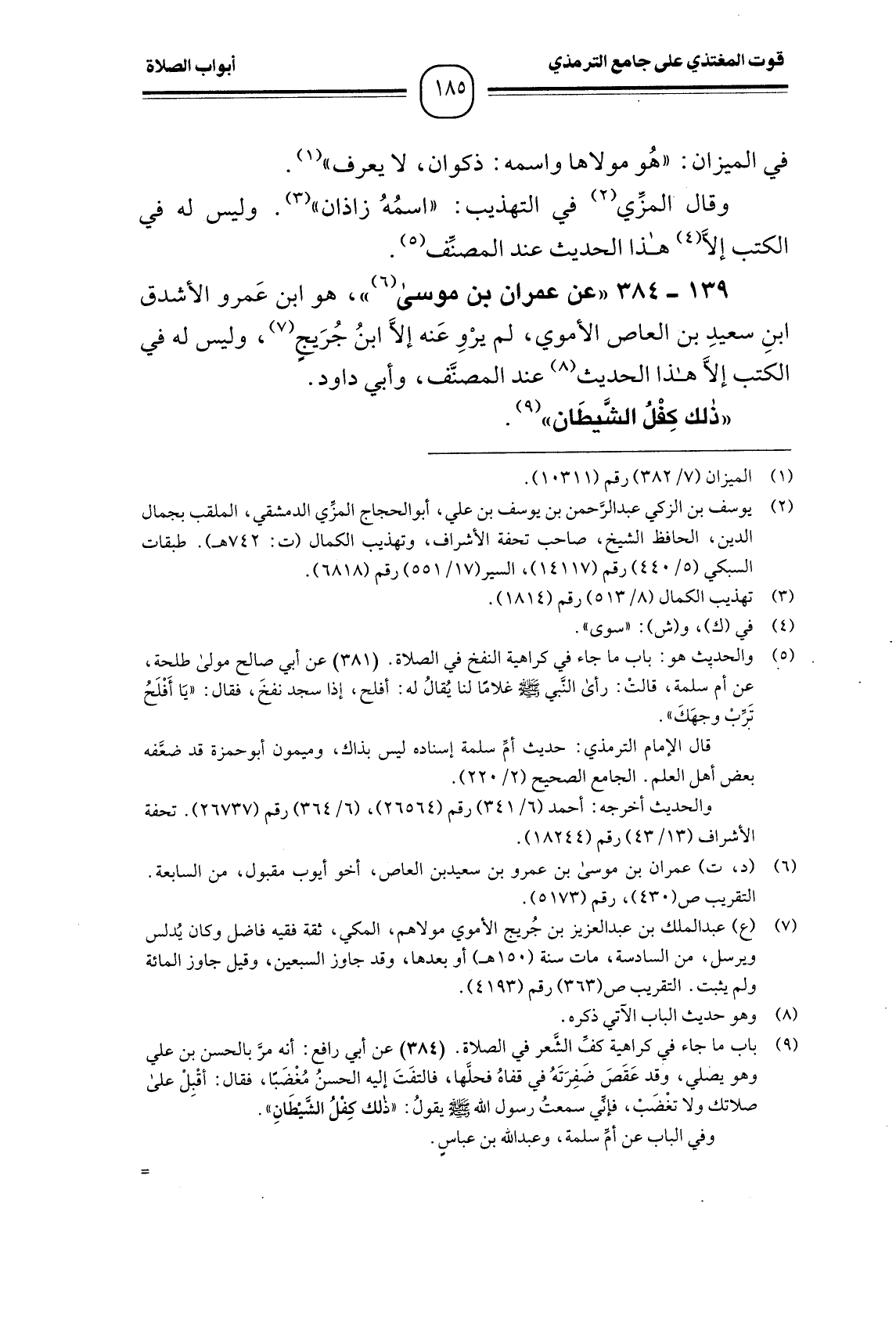 (¬5) والحديث هو: باب ما جاء في كراهية النفخ في الصلاة. (381) عن أبي صالح مولى طلحة، عن أم سلمة، قالتْ: رأى النَّبي - صَلَّى اللَّهُ عَلَيْهِ وَسَلَّمَ - غلامًا لنا يُقالُ له: أفلح، إذا سجد نفخَ، فقال: " يَا أَفْلَحُ تَرِّبْ وجهَكَ ".