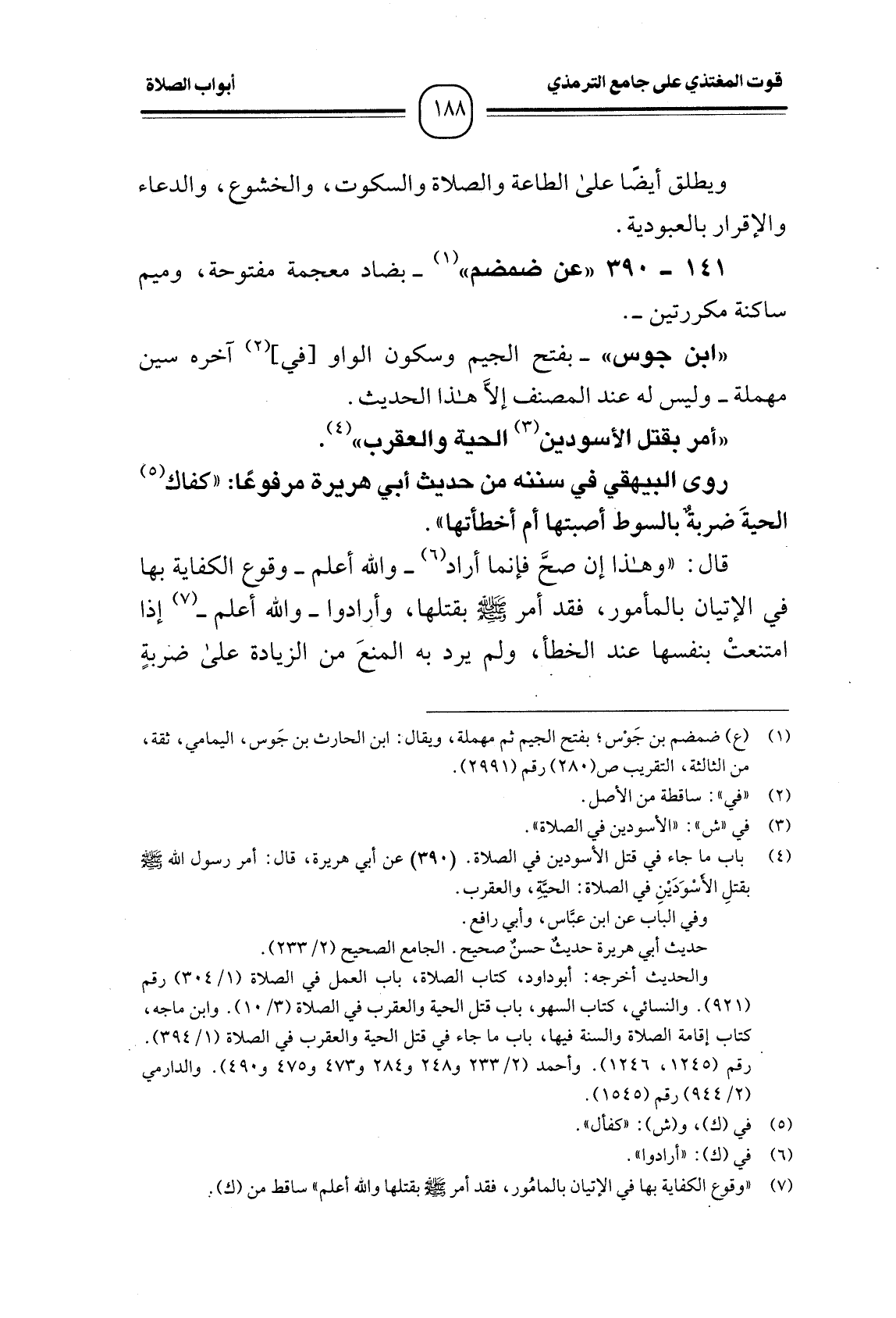 (¬7) " وقوع الكفاية بها في الإتيان بالمأمُور، فقد أمر - صَلَّى اللَّهُ عَلَيْهِ وَسَلَّمَ - بقتلها والله أعلم " ساقط من (ك) .
