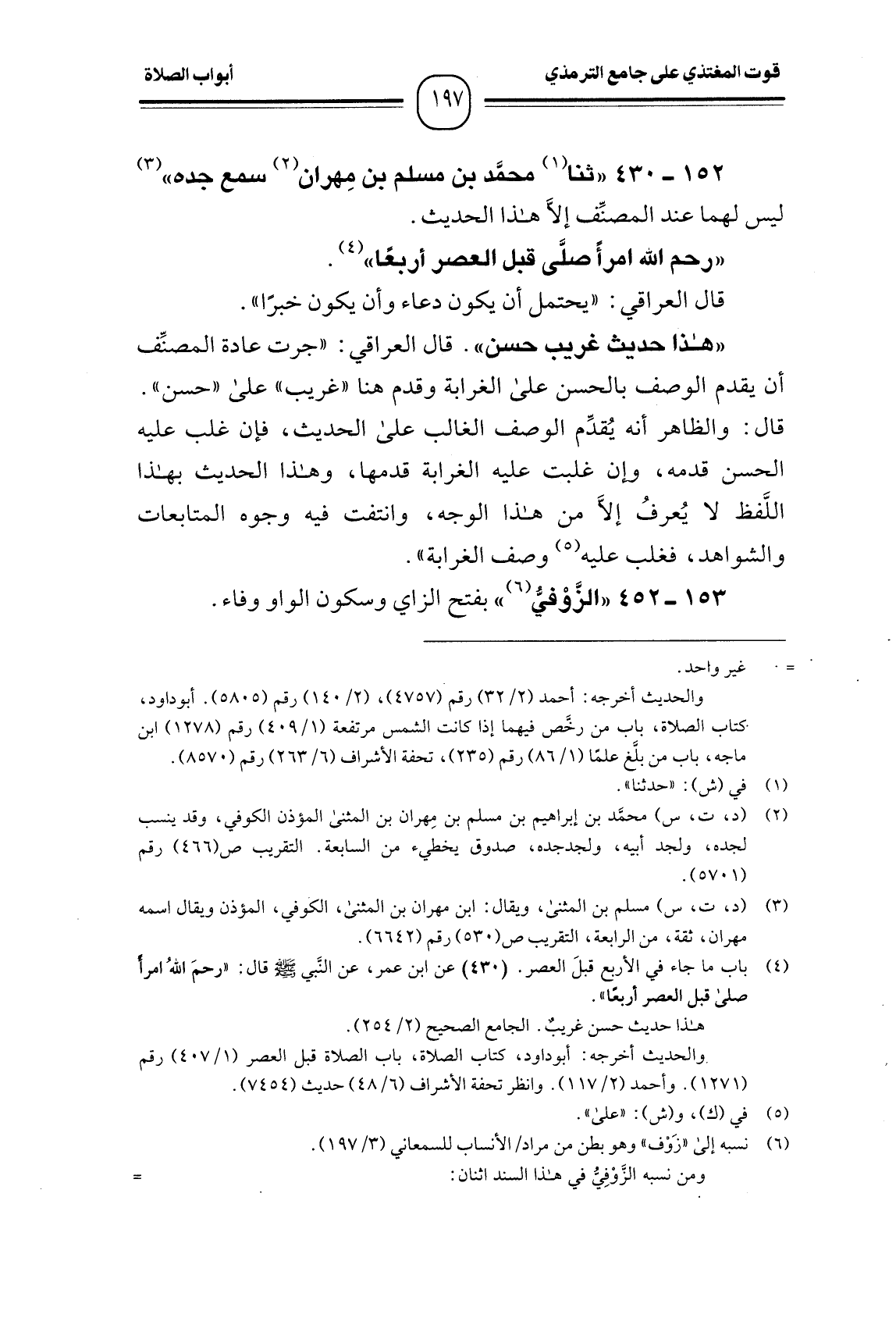 (¬4) باب ما جاء في الأربع قبلَ العصر. (430) عن ابن عمر، عن النَّبي - صَلَّى اللَّهُ عَلَيْهِ وَسَلَّمَ - قال: "رحمَ اللهُ امرأً صلى قبل العصر أربعًا".