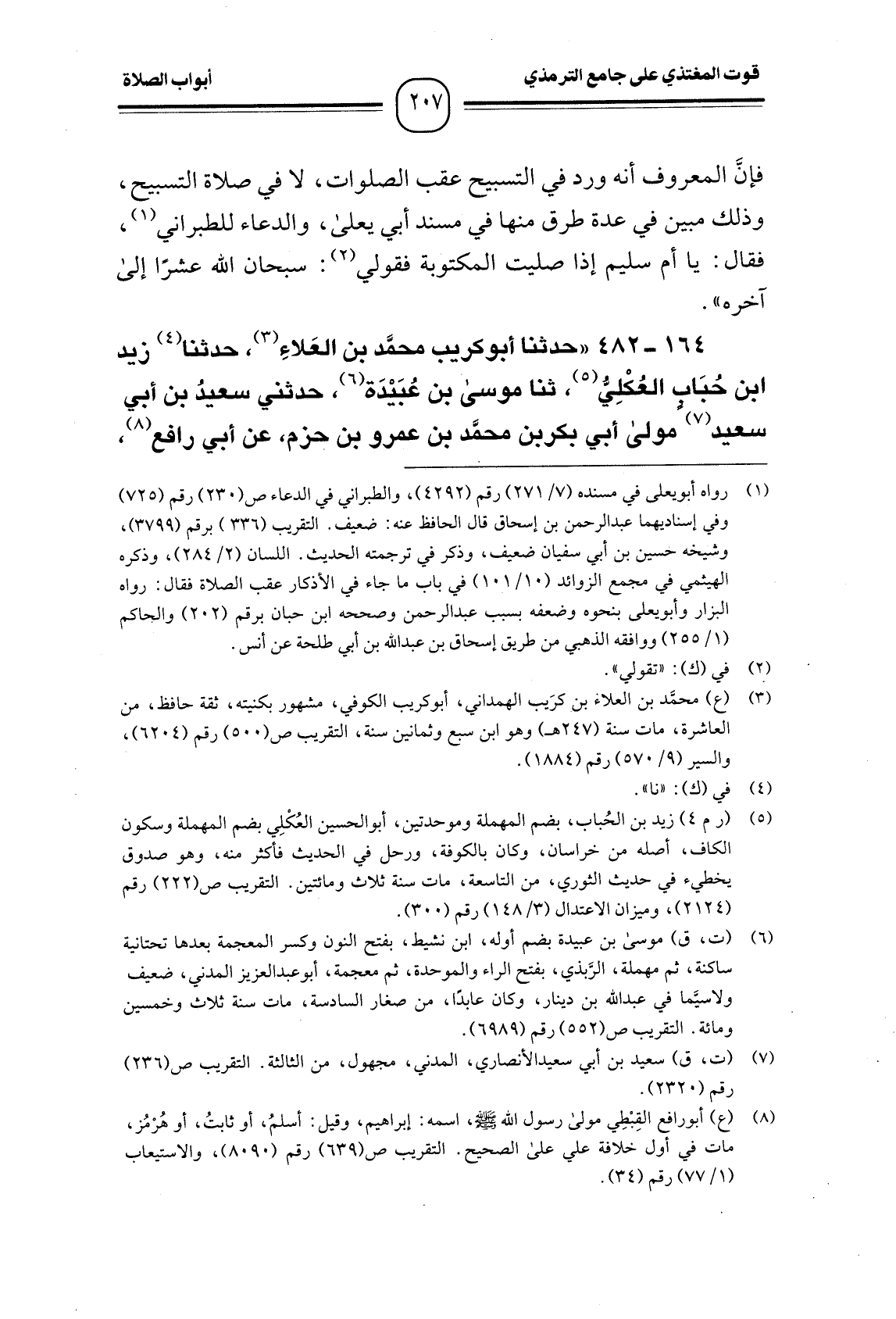 164 -[482] " حدثنا أبو كريب محمَّد بن العَلاءِ (¬1) ، حدثنا (¬2) زيد ابن حُبَاب العُكْلِيُّ (¬3) ، ثنا موسى بن عُبَيْدَة (¬4) ، حدثثي سعيدُ بن أبي سعيد (¬5) مولى أبي بكر بن محمَّد بن عمرو بن حزم، عن أبي رافع (¬6) ،
