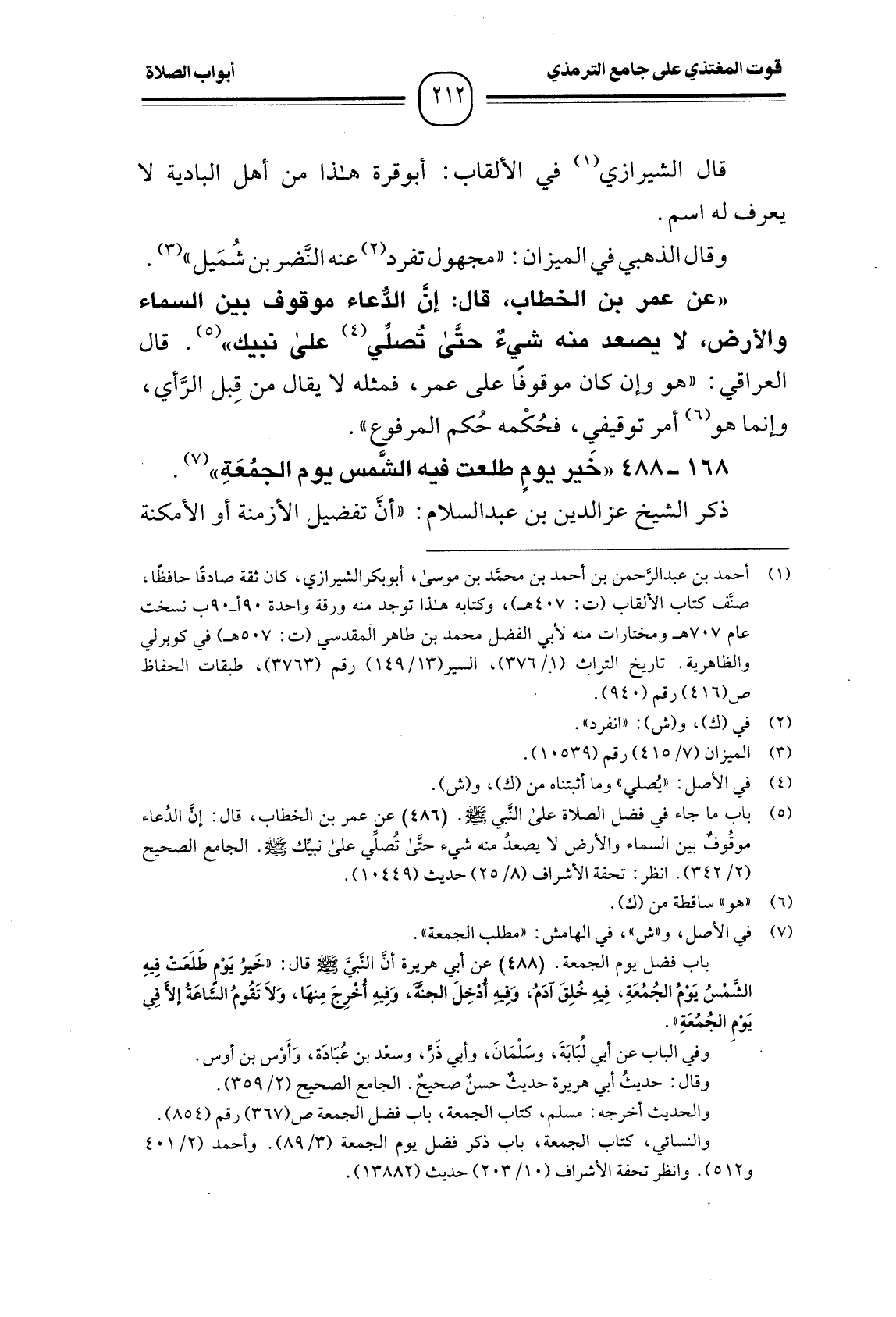 168 -[488] " خير يومٍ طلعت فيه الشَّمس يوم الجمُعَةِ " (¬1) .