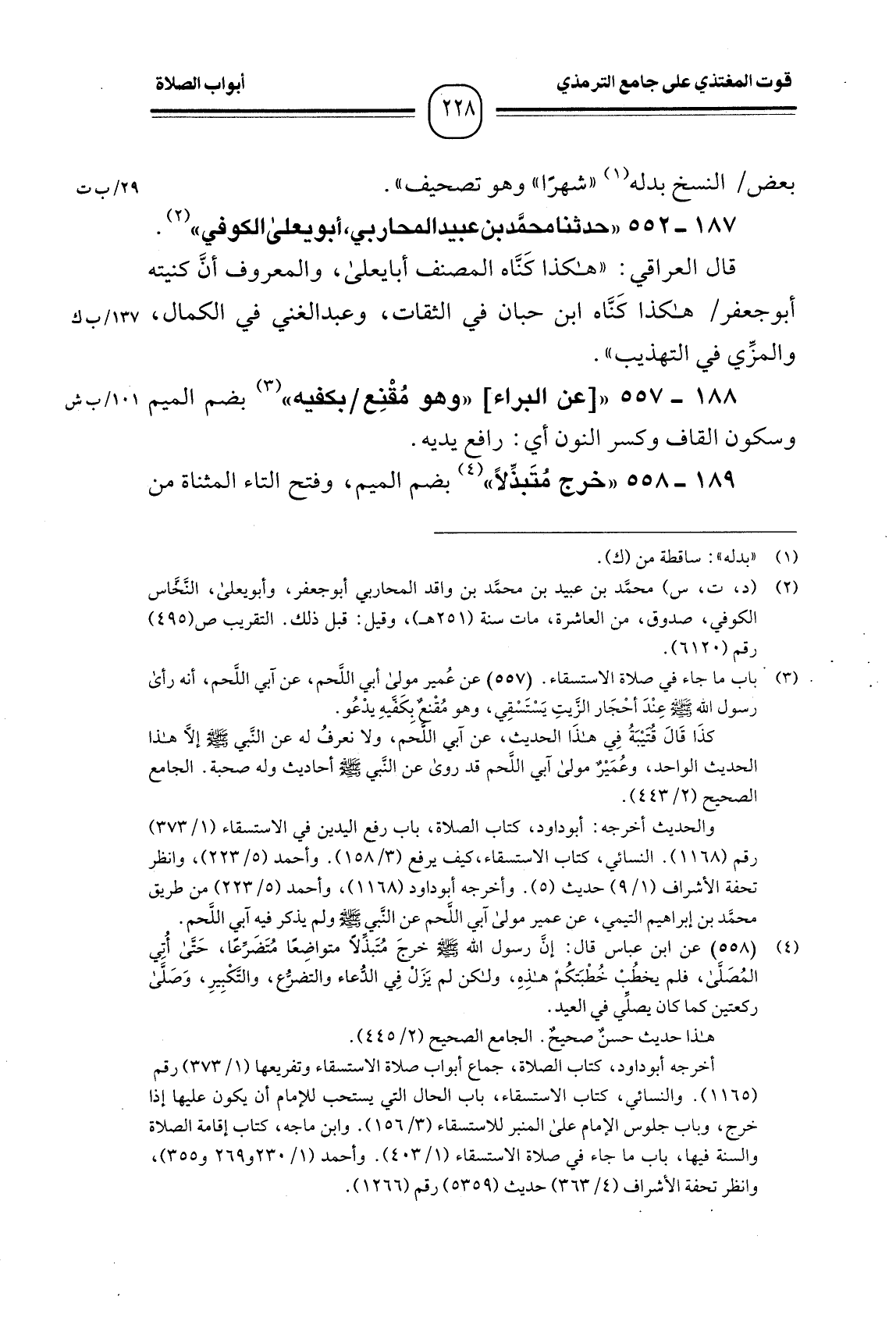 187 -[552] "حدثنا محمَّد بن عبيد المحاربي، أبو يعلى الكوفي" (¬1) .