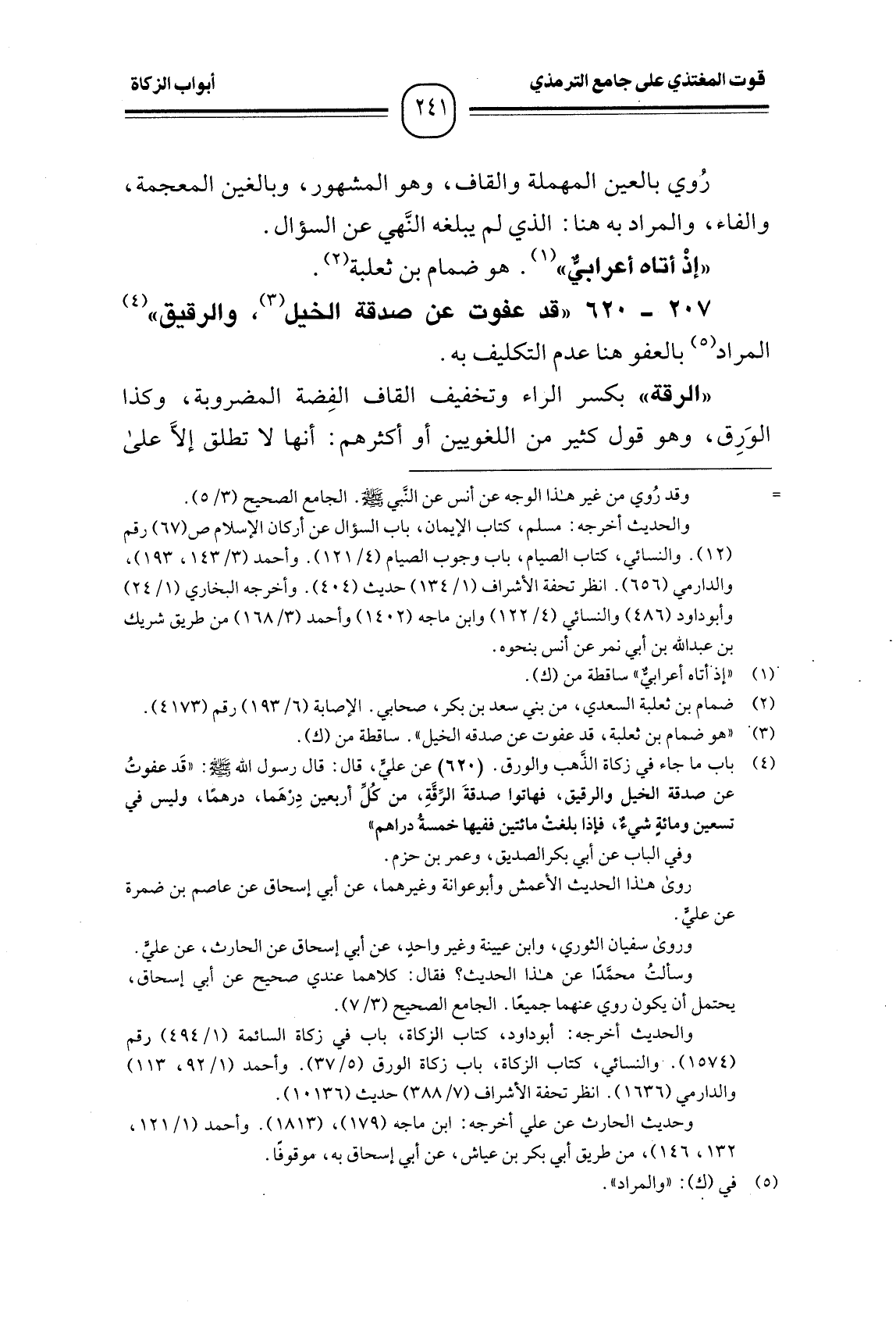 207 -[620] "قد عفوت عن صدقة الخيل (¬1) ، والرقيق" (¬2)