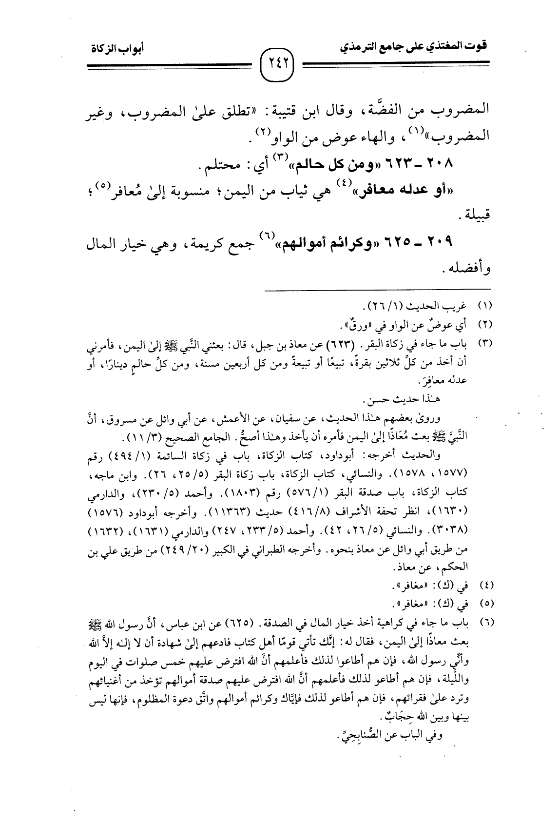 209 -[625] "وكرائم أموالهم" (¬1) جمع كريمة، وهي خيار المال وأفضله.