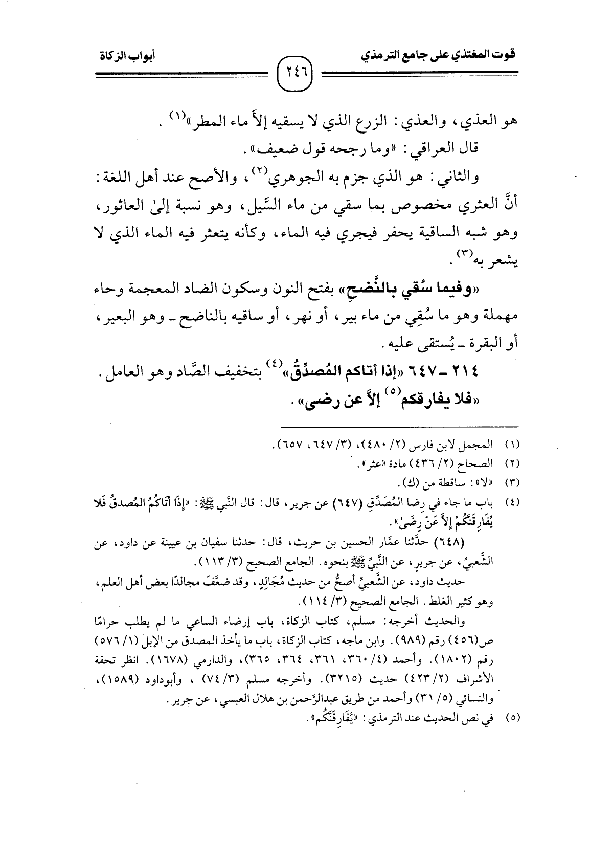 214 -[647] "إذا أتاكم المُصدِّقُ" (¬1) بتخفيف الصَّاد وهو العامل.