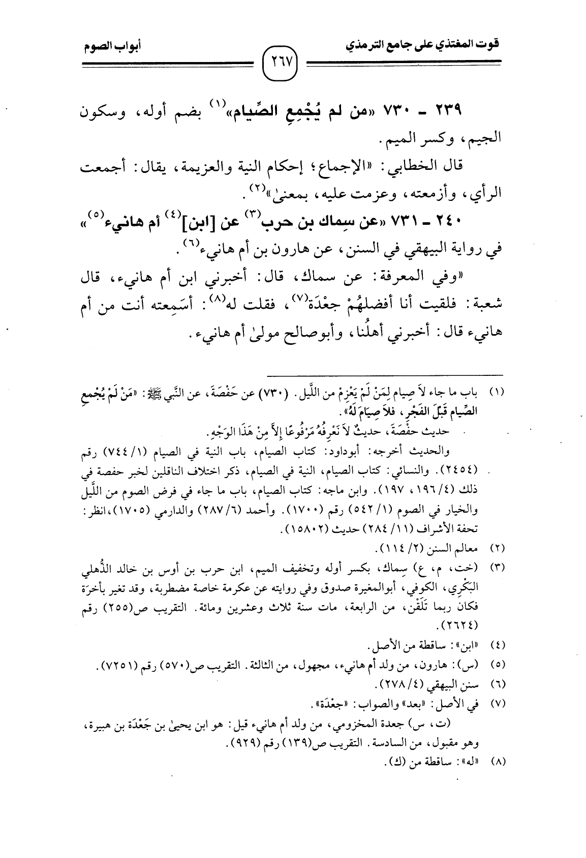 239 -[730] "من لم يُجْمِعِ الصِّيام" (¬1) بضم أوله، وسكون الجيم، وكسر الميم.