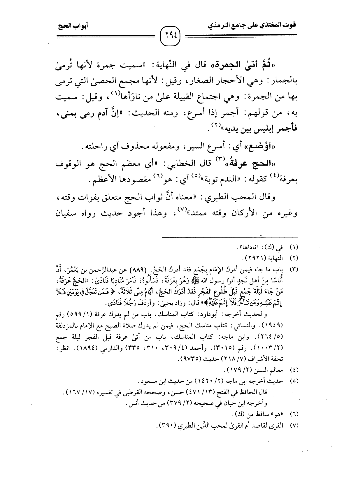 وقال المحب الطبري: "معناه أنَّ ثواب الحج متعلق بفوات وقته، وغيره من الأركان وقته ممتد" (¬7) ، وهذا أجود حديث رواه سفيان