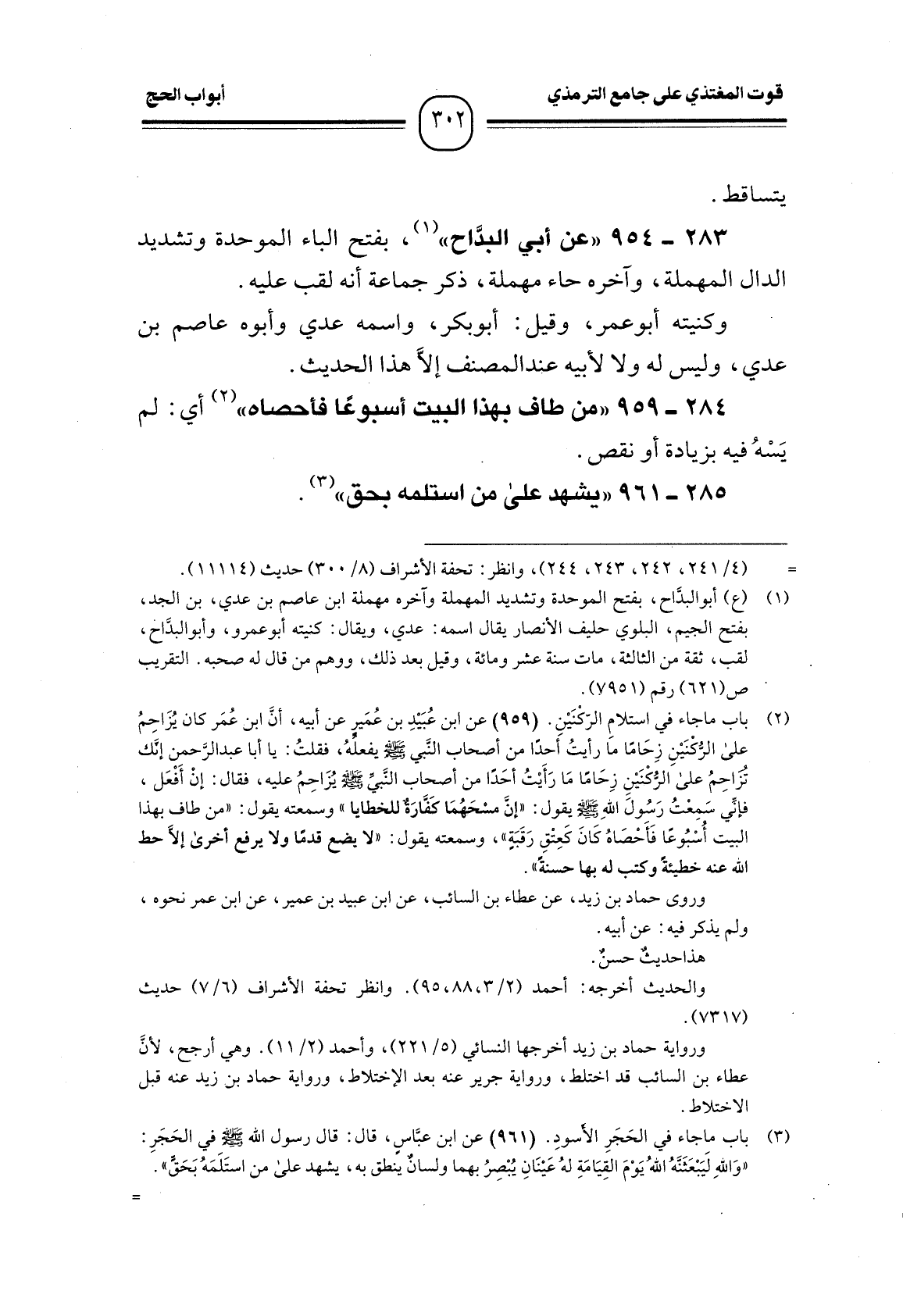 284 -[959] "من طاف بهذا البيت أسبوعًا فأحصاه" (¬1) أي: لم يَسْهُ فيه بزيادة أو نقص.