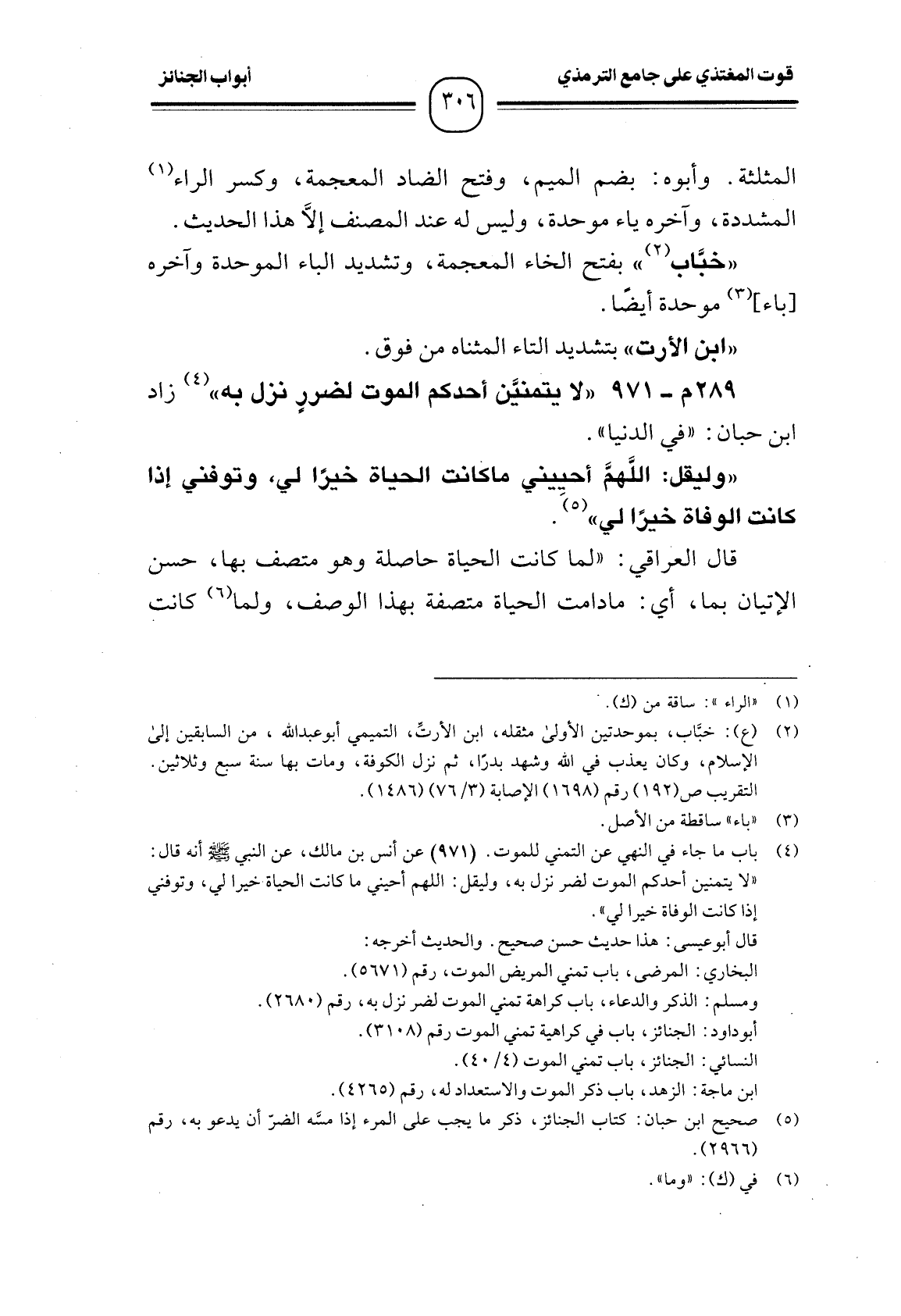 (¬2) (ع) : خباب، بموحدتين الأولى مثقله، ابن الأرت، التميمي أبو عبد الله، من السابقين إلى الإسلام، وكان يعذب في الله وشهد بدرًا، ثم نزل الكوفة، ومات بها سنة سبع وثلاثين. التقريب ص (192) رقم (1698) الإصابة (3/76) (1486) .