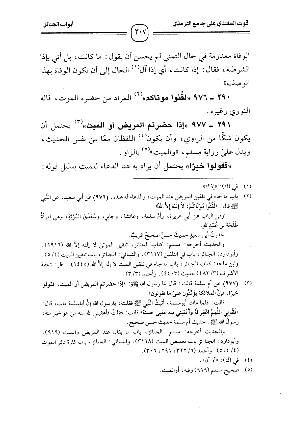290 -[976] "لقِّنوا موتاكم" (¬1) المراد من حضره الموت، قاله النووي وغيره.