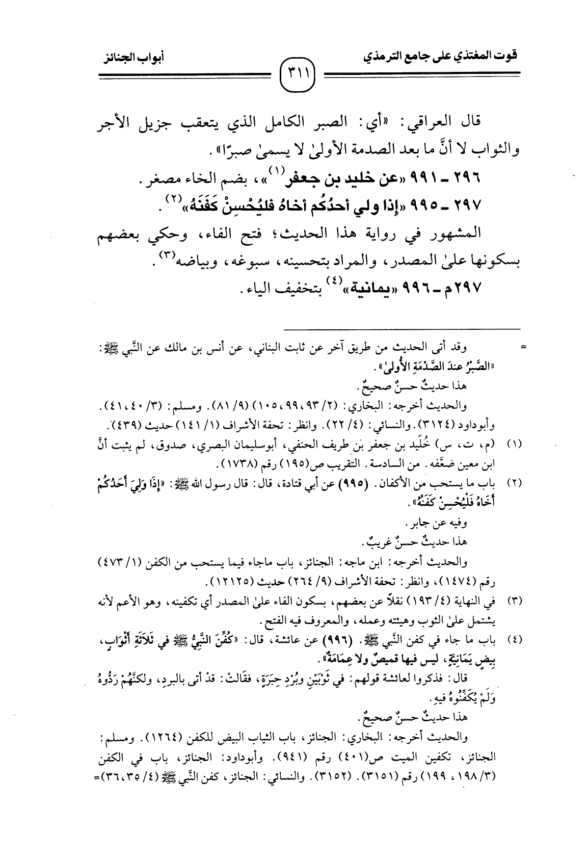 297 -[995] "إِذا ولي أحدُكُم أخاهُ فليُحْسِنْ كَفَنَهُ" (¬1) .