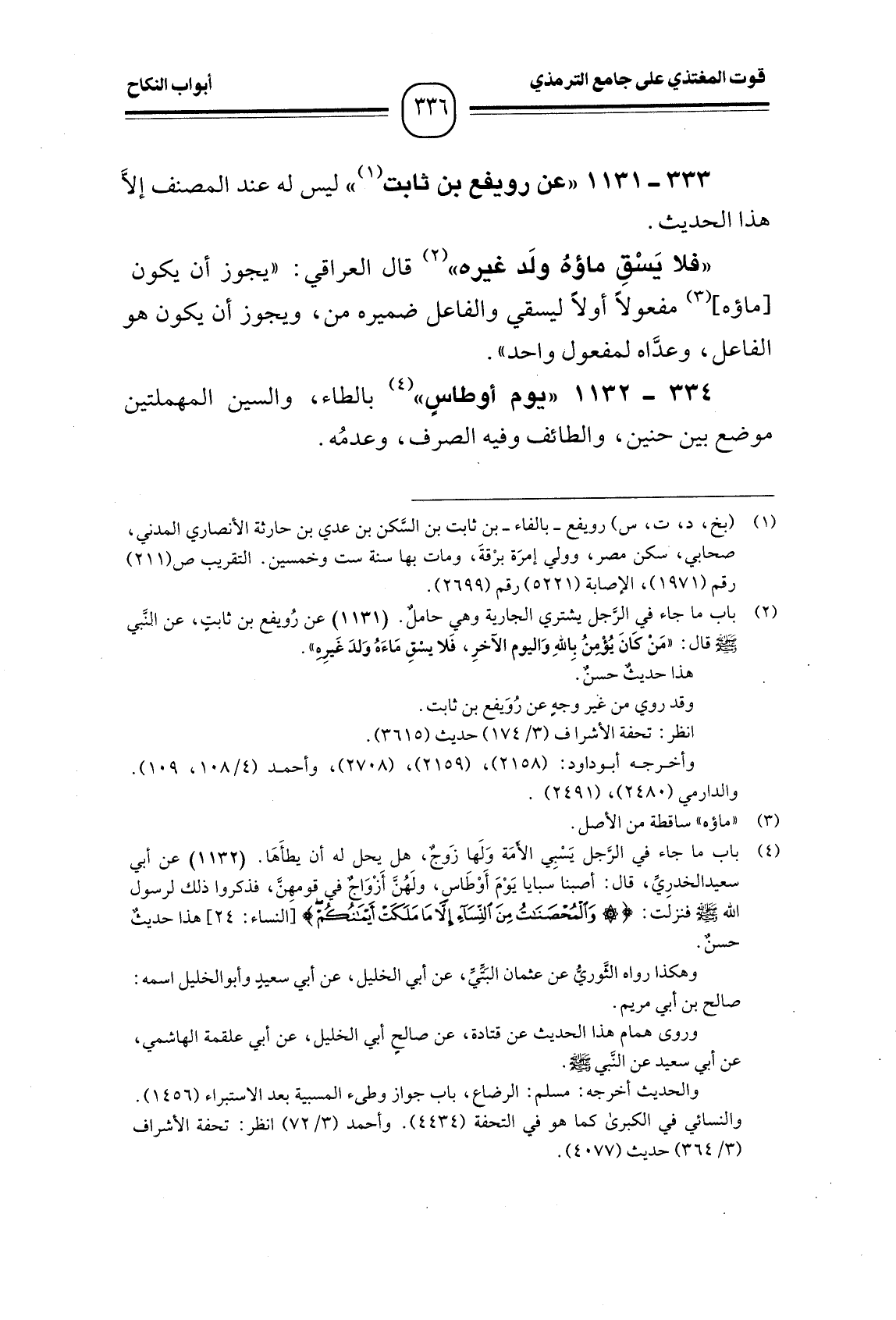334 -[1132] "يوم أوطاسٍ" بالطاء، والسين المهملتين موضع بين حنين، والطائف وفيه الصرف، وعدمُه.