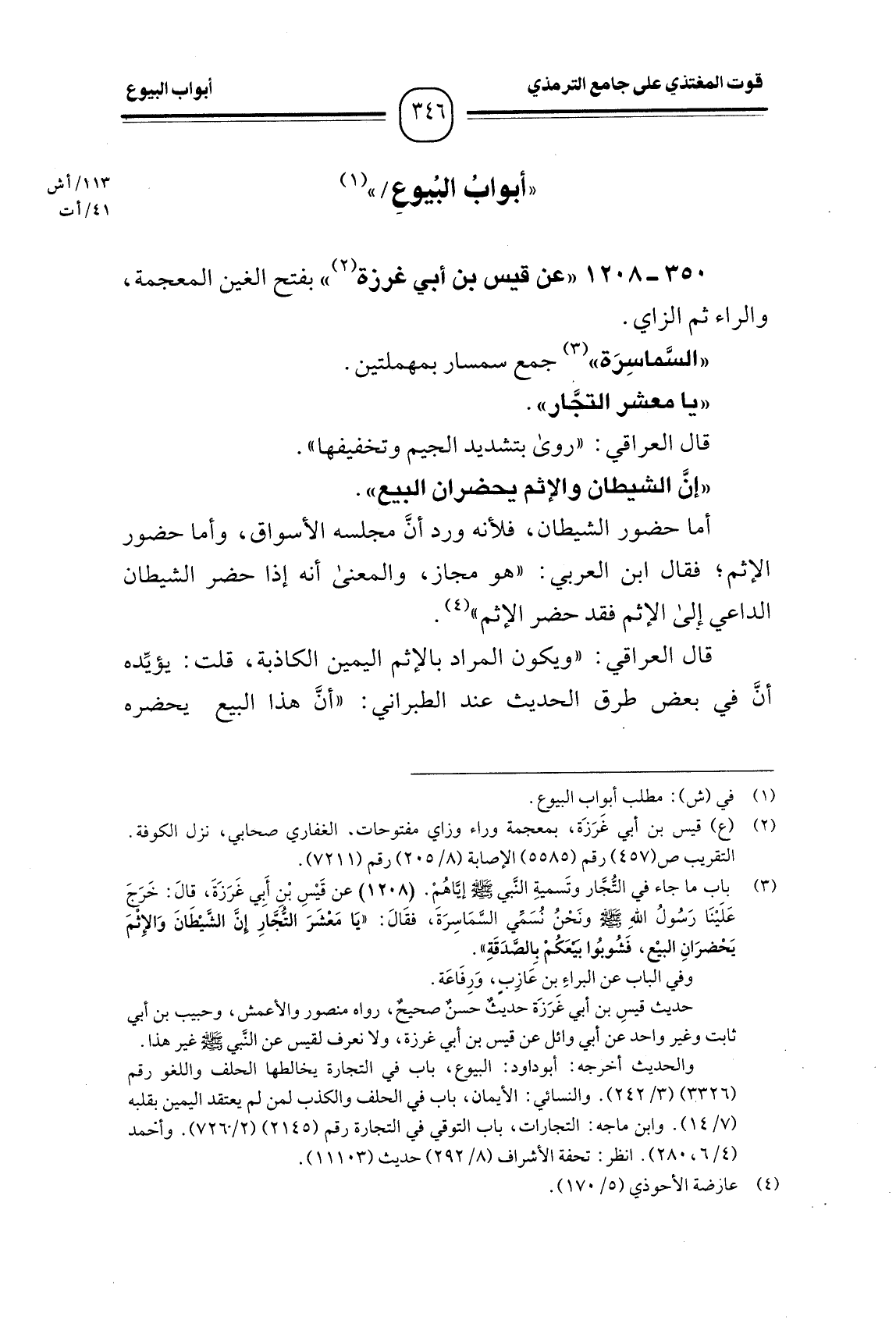 350 -[1208] "عن قيس بن أبي غرزة" بفتح الغين المعجمة، والراء ثم الزاي.