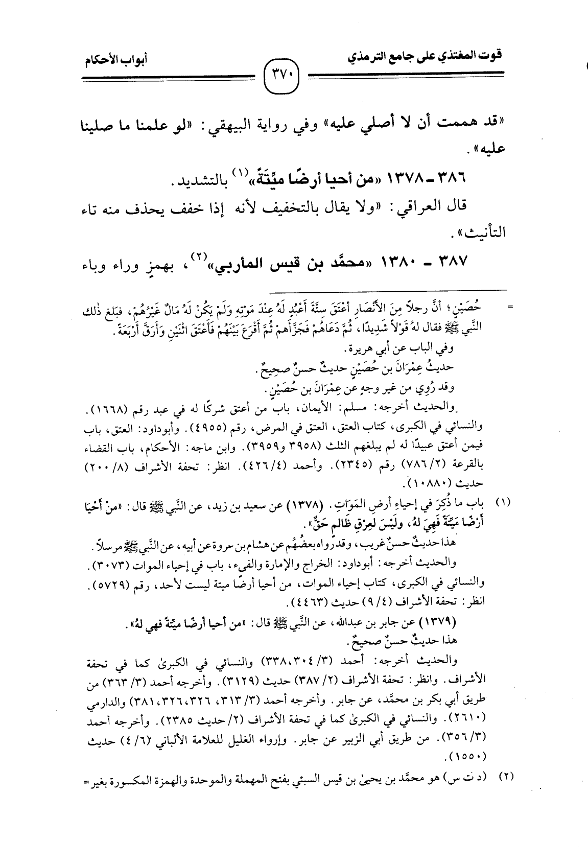 386 -[1378] "من أحيا أرضًا ميِّتَةً" بالتشديد.