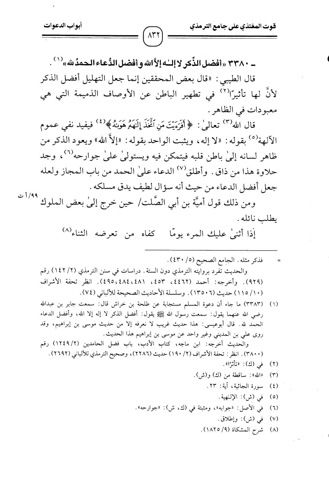 - 3380 "أفضل الذِّكر لا إله إلاَّ الله وأفضل الدُّعاء الحمد لله".
