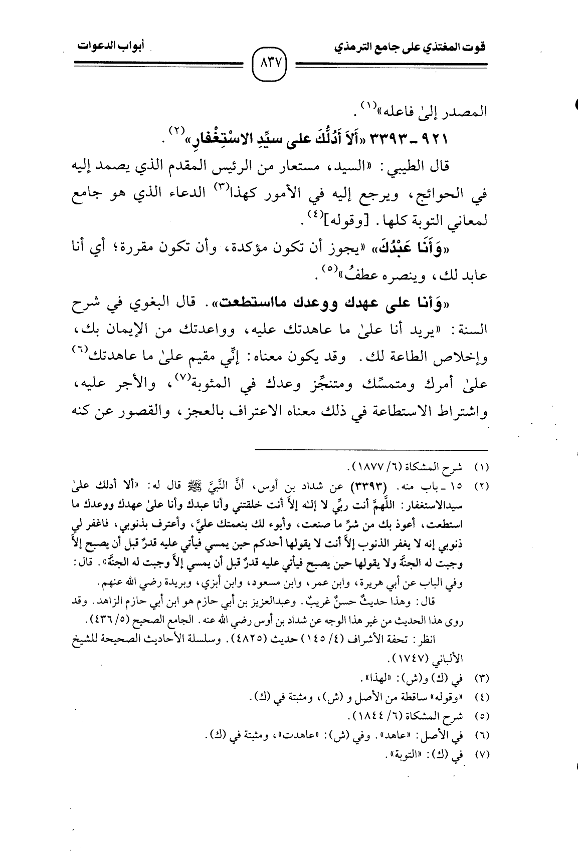 921 -[3393] "أَلاَ أَدُلُّكَ على سيِّدِ الاسْتِغْفارِ".