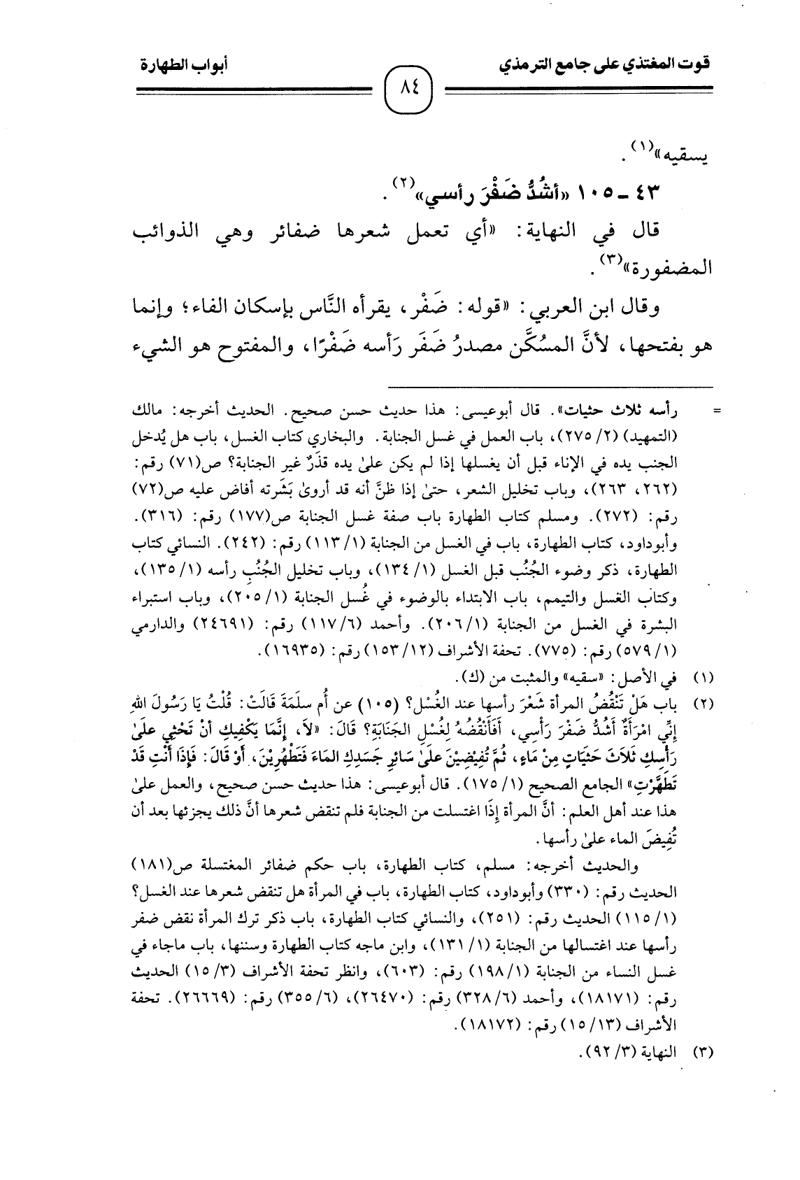 43 -[105] " أشُدُّ ضَفْرَ رأسي " (¬1) .