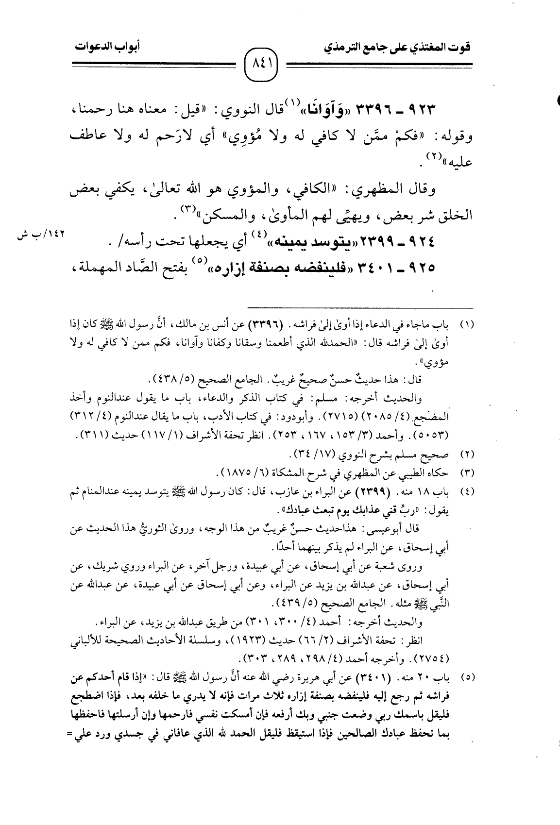 924 -[2399] "يتوسد يمينه" أي يجعلها تحت رأسه.